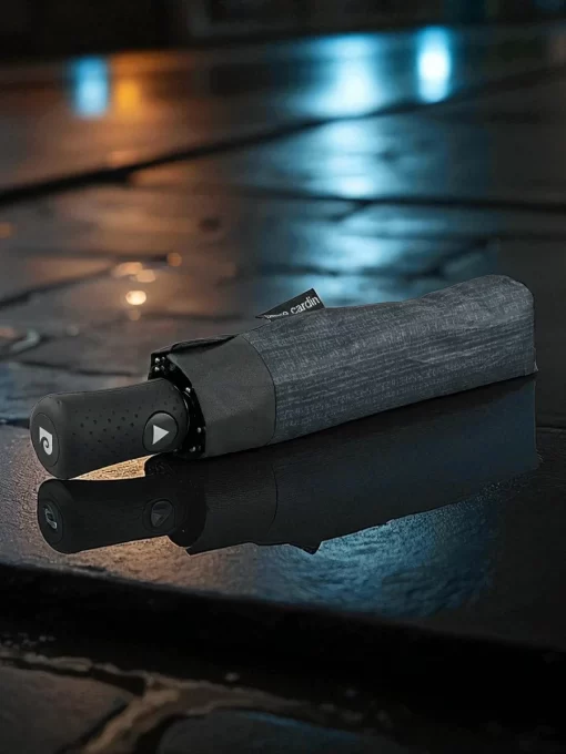 Αντιμετώπισε τις βροχερές ημέρες με κομψότητα και αξιοπιστία με την ανδρική ομπρέλα Pierre Cardin. Πρόκειται για μια σπαστή ομπρέλα υψηλής ποιότητας σε κλασικό μαύρο χρώμα, που συνδυάζει πρακτικότητα και διαχρονικό στυλ.