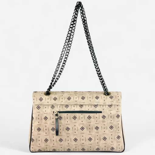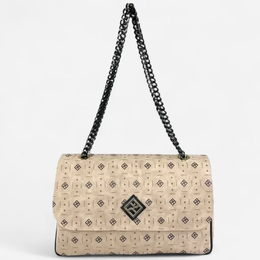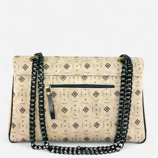 Αυτή η τσάντα ώμου σε χρώμα του πούρου με αλυσίδα και καπάκι από τη σειρά Monogram της εταιρείας Pierro Accessories αποτελεί ιδανική επιλογή για τη σύγχρονη γυναίκα που επιθυμεί να συνδυάσει κομψότητα και πρακτικότητα. Κατασκευασμένη από υψηλής ποιότητας συνθετικό δέρμα, αυτή η τσάντα ξεχωρίζει για το χαρακτηριστικό της μοτίβο monogram, το οποίο δίνει μια διαχρονική αίσθηση πολυτέλειας.