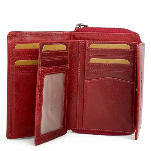 Αυτό το γυναικείο δερμάτινο πορτοφόλι Chesterfield από την σειρά Hanoi σε κόκκινο χρώμα συνδυάζει κομψότητα και πρακτικότητα, αποτελώντας ιδανική επιλογή για κάθε γυναίκα που αναζητά στυλ και οργάνωση. Κατασκευασμένο από γνήσιο φυσικό δέρμα μεγάλης αντοχής, ξεχωρίζει για την ποιότητα και τη διαχρονική του εμφάνιση. Μεσαίου μεγέθους, διαθέτει θήκη για χαρτονομίσματα, 12 θέσεις για κάρτες, 3 κρυφές θέσεις, ειδική θέση για την αστυνομική ταυτότητα, μεγάλο εξωτερικό φερμουάρ για κέρματα και επιπλέον θέση με φερμουάρ στο πίσω μέρος. Συνοδεύεται από κομψή συσκευασία σε κουτί, ιδανικό και για δώρο.