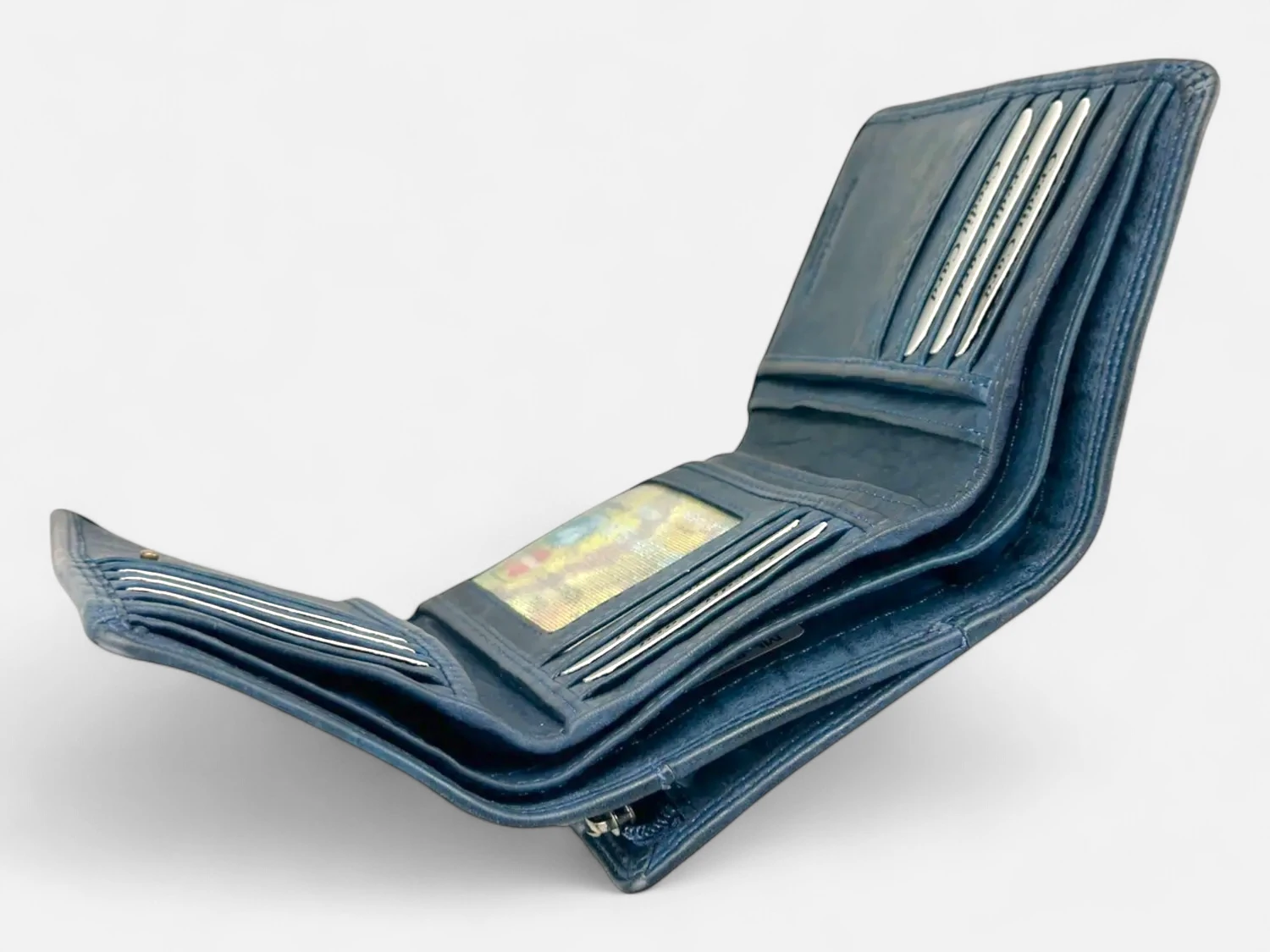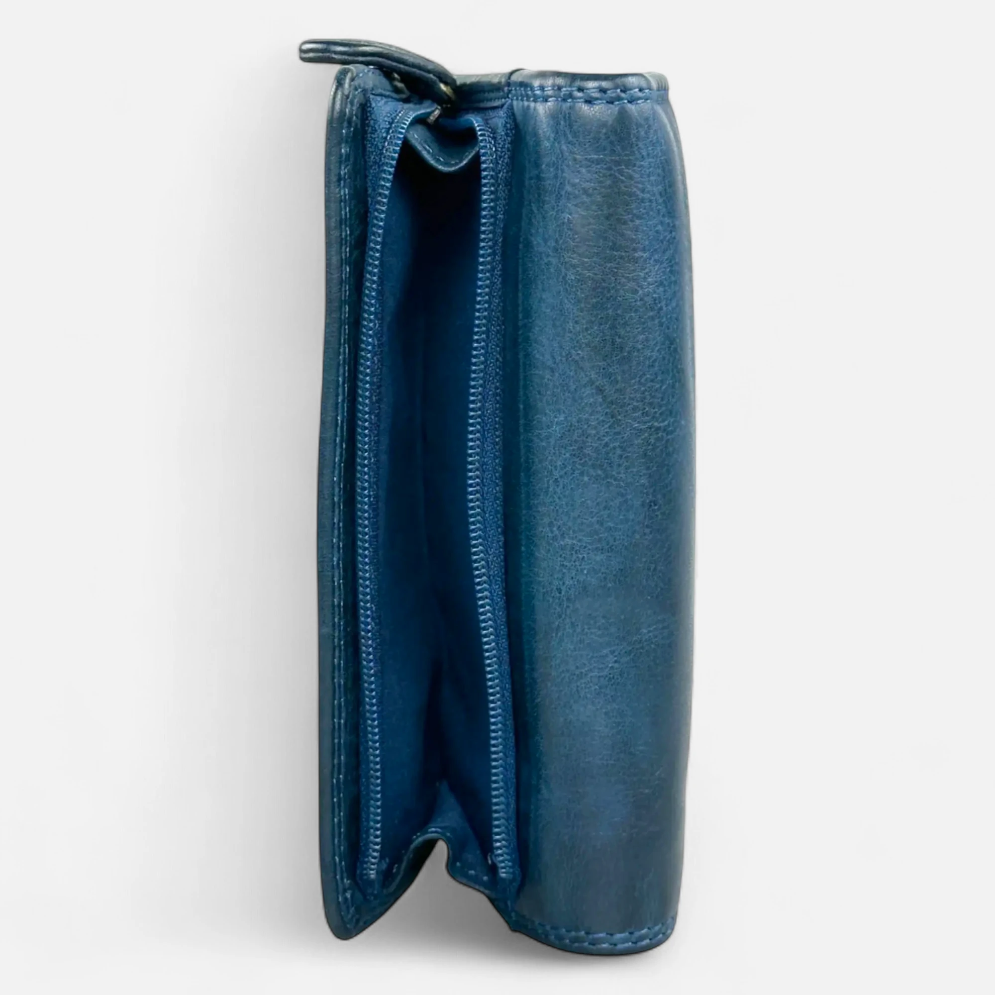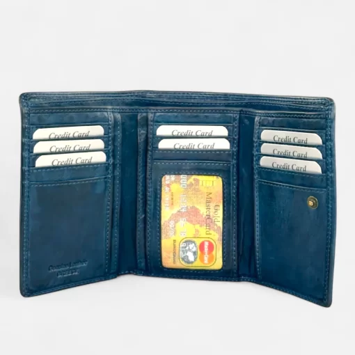 Ανακαλύψτε αυτό το κομψό γυναικείο πορτοφόλι σε Μπλε χρώμα, ιδανικό για κάθε γυναίκα που αναζητά ποιότητα και στυλ. Κατασκευασμένο από γνήσιο φυσικό δέρμα μεγάλης αντοχής, προσφέρει πρακτικότητα και πολυτέλεια σε κάθε χρήση.