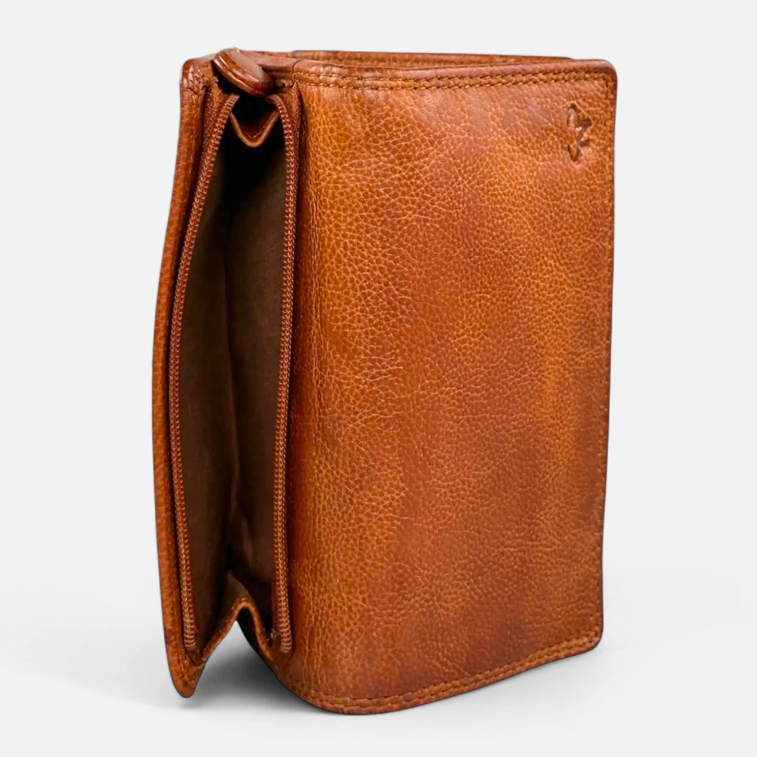 Γυναικείο Πορτοφόλι Δερμάτινο Calfnero Μεσαίου Μεγέθους ML8268 Κονιάκ