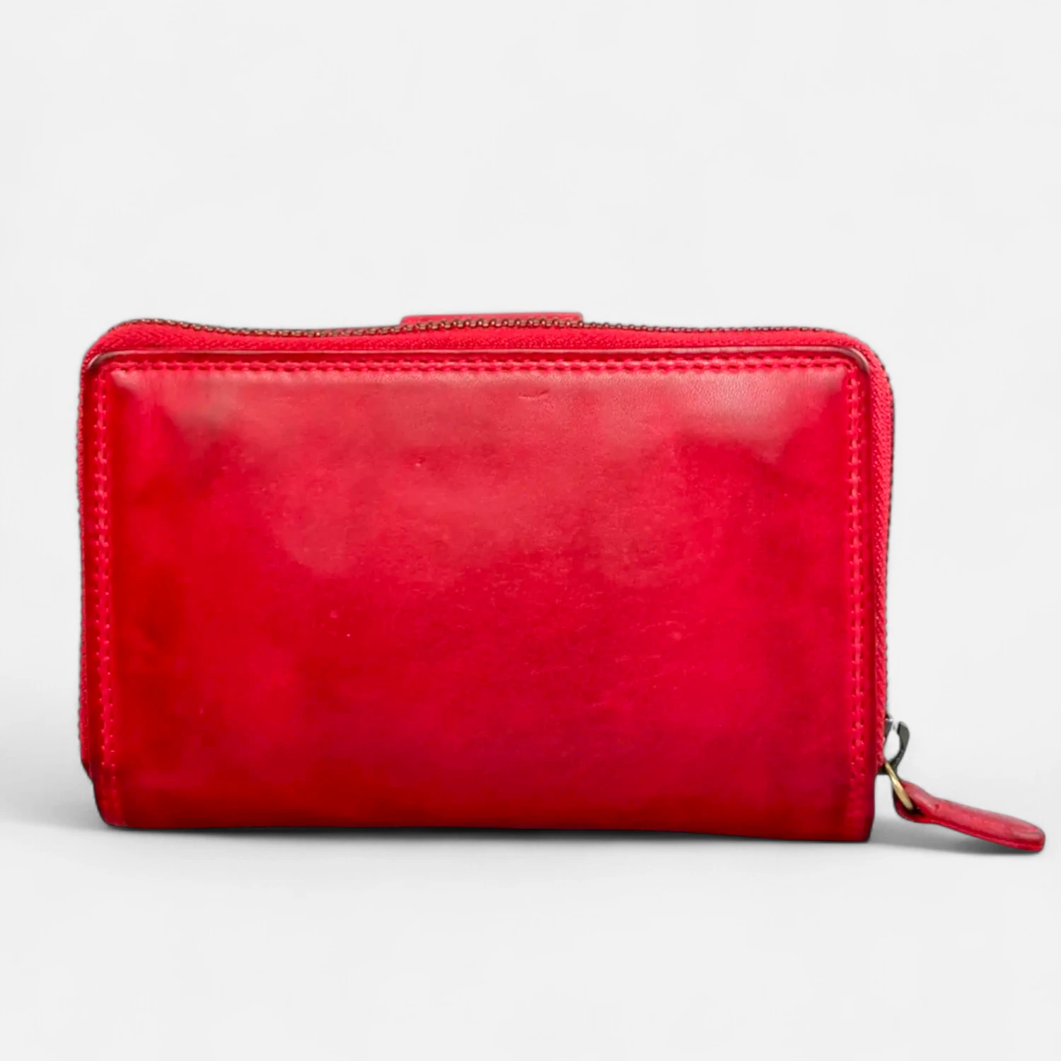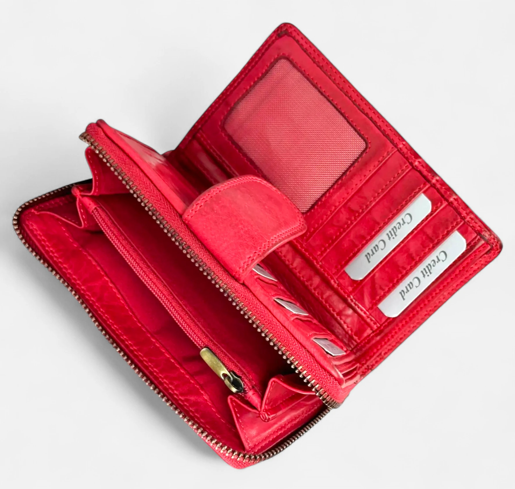 Ανακαλύψτε αυτό το κομψό δερμάτινο γυναικείο πορτοφόλι σε κόκκινο χρώμα, ιδανικό για κάθε γυναίκα που αναζητά ποιότητα και στυλ. Κατασκευασμένο από γνήσιο φυσικό δέρμα μεγάλης αντοχής, προσφέρει πρακτικότητα και πολυτέλεια σε κάθε χρήση.