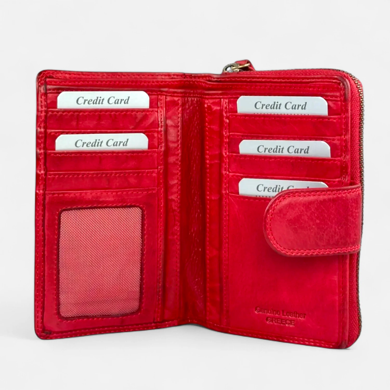 Γυναικείο Πορτοφόλι Δερμάτινο Calfnero Μεσαίου Μεγέθους N1008 Κόκκινο