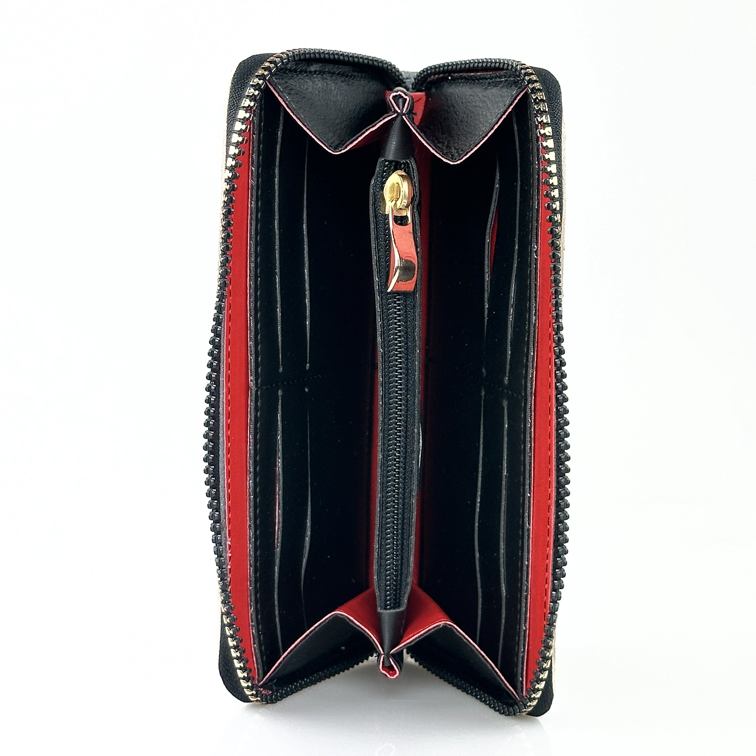 Το πρακτικό περιμετρικό φερμουάρ εξασφαλίζει απόλυτη ασφάλεια στα προσωπικά σας αντικείμενα, ενώ παράλληλα προσφέρει εύκολη πρόσβαση σε αυτά. Στο εσωτερικό του θα βρείτε πολλαπλές θήκες για κάρτες, χαρτονομίσματα, αποδείξεις και κέρματα, επιτρέποντάς σας να οργανώσετε αποτελεσματικά όλα όσα χρειάζεστε καθημερινά. Έτσι, το πορτοφόλι σας παραμένει τακτοποιημένο, χωρίς περιττό όγκο.