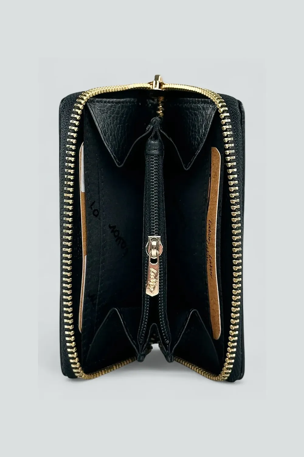 Ανακάλυψε την κομψότητα και την ασφάλεια με το δερμάτινο γυναικείο πορτοφόλι Lavor σε Μαύρο χρώμα. Ένα μικρού μεγέθους πορτοφόλι που κλείνει περιμετρικά με φερμουάρ και έχει διαστάσεις 12cm μήκος, 2cm πλάτος και 8cm ύψος συνδυάζει πρακτικότητα και διαχρονικό στυλ, ιδανικό για καθημερινή χρήση αλλά και ως κομψό δώρο.