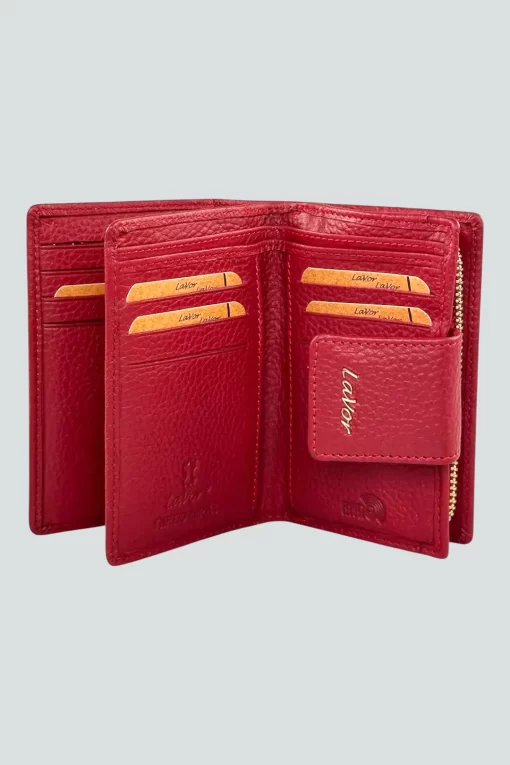 Ανακάλυψε την κομψότητα και την ασφάλεια με το δερμάτινο γυναικείο πορτοφόλι Lavor σε Κόκκινο χρώμα. Ένα μικρού μεγέθους πορτοφόλι με διαστάσεις 10cm μήκος, 3cm πλάτος και 12cm ύψος συνδυάζει πρακτικότητα και διαχρονικό στυλ, ιδανικό για καθημερινή χρήση αλλά και ως κομψό δώρο.
