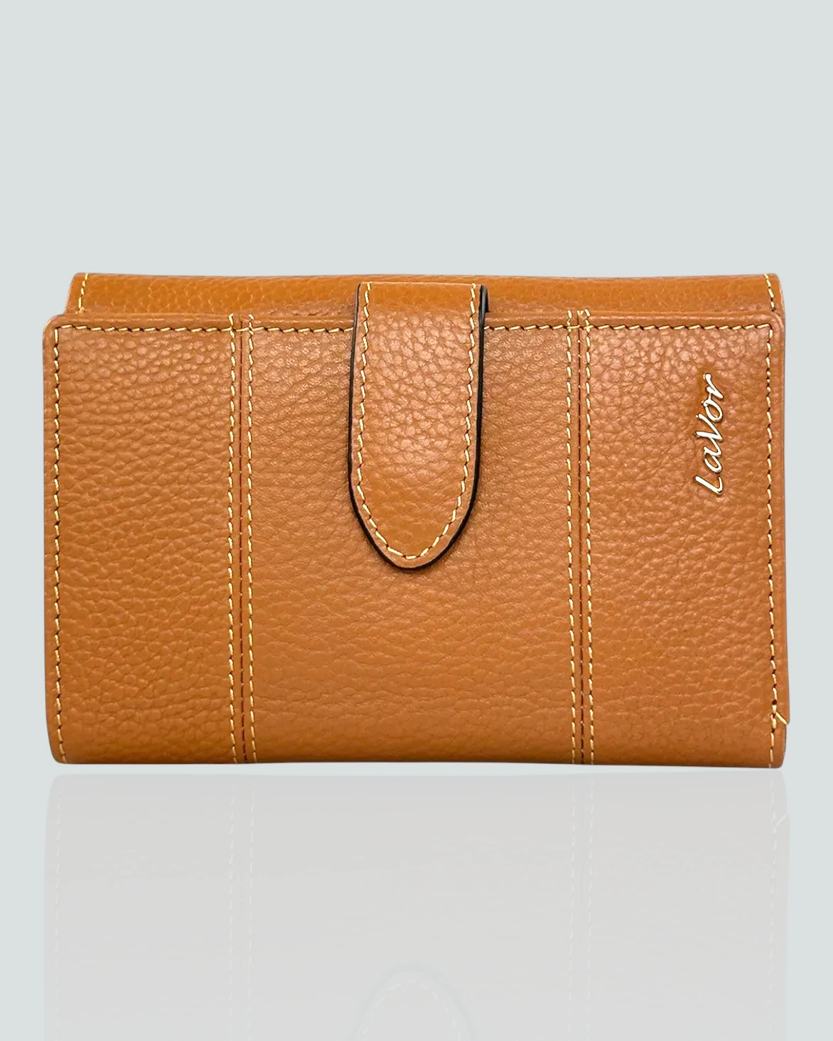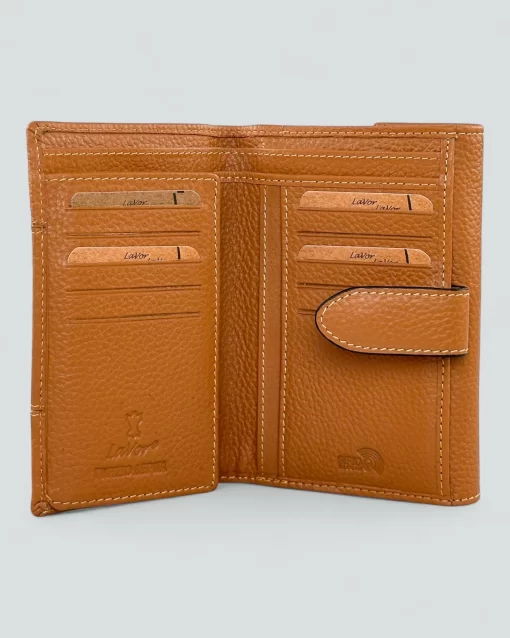 Ανακάλυψε την κομψότητα και την ασφάλεια με το δερμάτινο γυναικείο πορτοφόλι Lavor σε Ταμπά χρώμα. Ένα μεσαίου μεγέθους πορτοφόλι με διαστάσεις 10.5cm μήκος, 3cm πλάτος και 15cm ύψος συνδυάζει πρακτικότητα και διαχρονικό στυλ, ιδανικό για καθημερινή χρήση αλλά και ως κομψό δώρο.