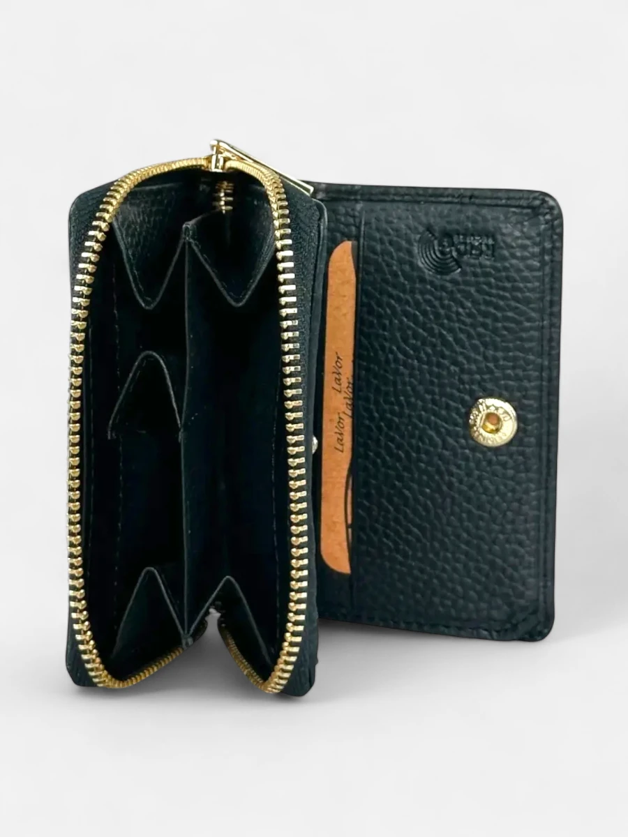 Ανακάλυψε την κομψότητα και την ασφάλεια με το δερμάτινο γυναικείο πορτοφόλι Lavor σε μαύρο χρώμα. Ένα μικρού μεγέθους πορτοφόλι με διαστάσεις 11,5cm μήκος, 2cm πλάτος και 8,5cm ύψος, που συνδυάζει πρακτικότητα και διαχρονικό στυλ, ιδανικό για καθημερινή χρήση αλλά και ως κομψό δώρο.