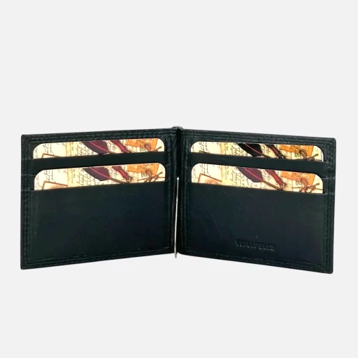 Δερμάτινο Πορτοφόλι με μεταλλικο έλασμα R308 Μαύρο