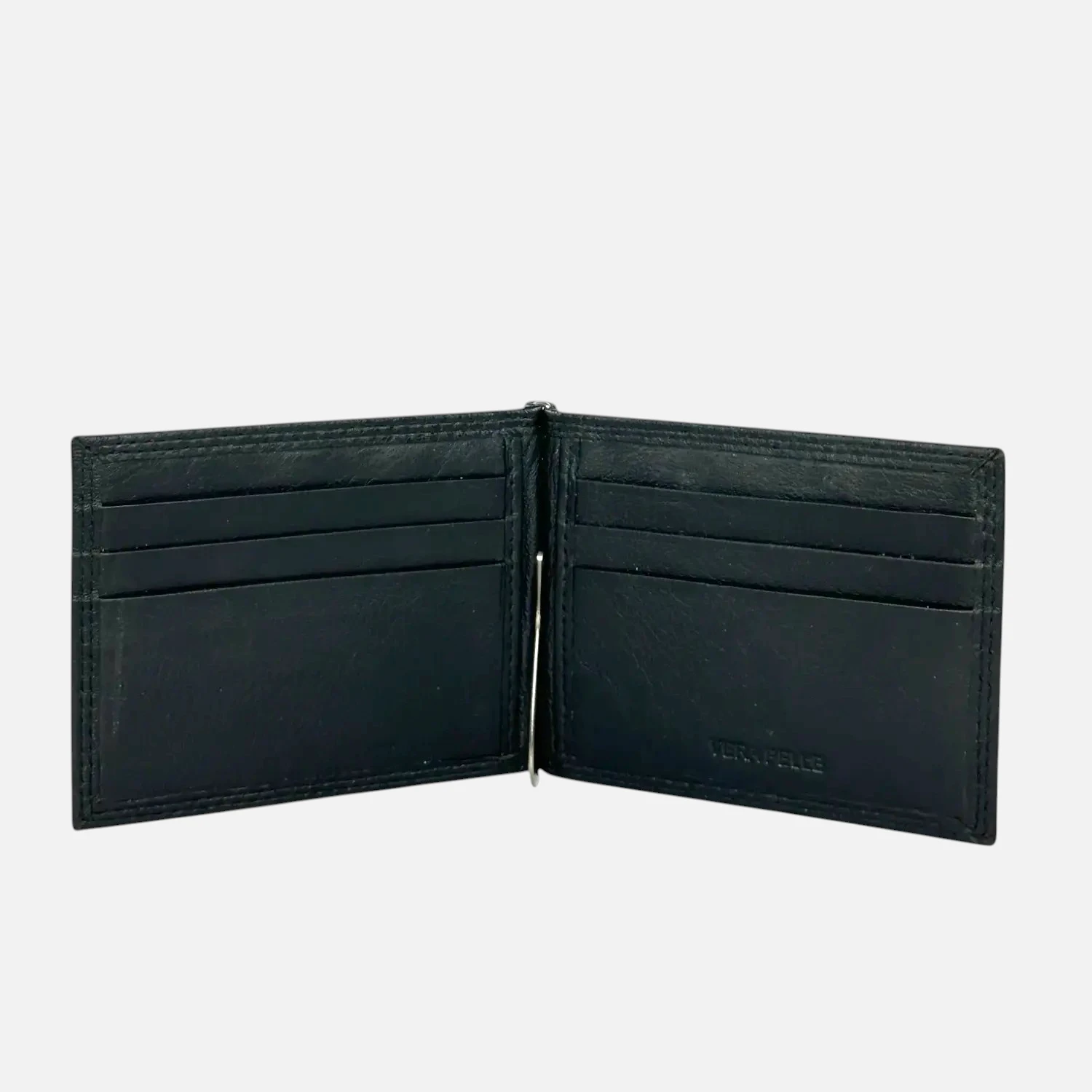 Ανδρικό πορτοφόλι δερμάτινο με μεταλλικό έλασμα από Γνήσιο δέρμα μοσχαριού