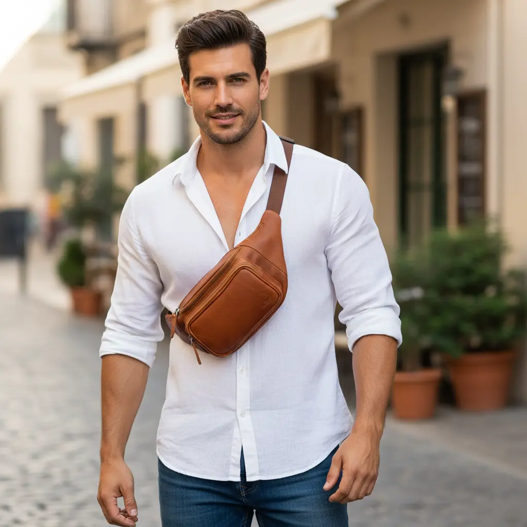 Αναβάθμισε το καθημερινό σου στυλ με το δερμάτινο τσαντάκι μέσης RCM σε ταμπα χρώμα, έναν ιδανικό συνδυασμό λειτουργικότητας, ποιότητας και διαχρονικής αισθητικής. Το απόλυτο αξεσουαρ για άνδρες που αναζητούν πρακτικότητα χωρίς συμβιβασμούς στο στυλ.