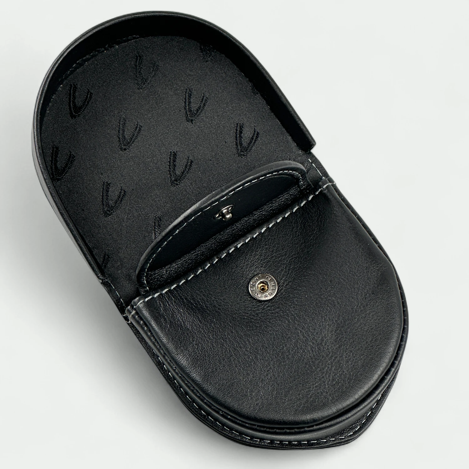 Το πορτοφόλι καβουράκι διαθέτει κύρια θέση για κέρματα και εσωτερική θήκη για μικρά αντικείμενα ή χαρτονομίσματα. Το μαύρο δέρμα του προσδίδει κλασικό στυλ, ενώ το μικρό του μέγεθος το καθιστά ιδανικό για όσους προτιμούν πρακτικά και κομψά πορτοφόλια που χωρούν εύκολα σε κάθε τσέπη.