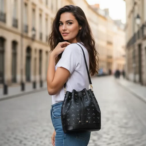Αυτή η best seller γυναικεία τσάντα ώμου πουγκί σε χρώμα Μαύρο της εταιρείας La tour Eiffel είναι από συνθετικό εξαιρετικής ποιότητας με δερμάτινες λεπτομέρειες.