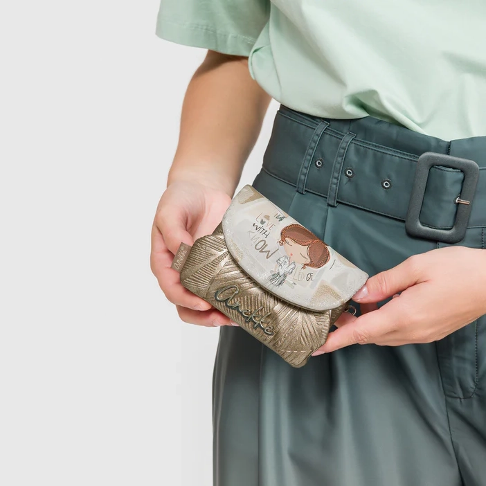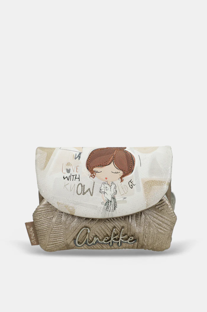 Η μπροστινή όψη του πορτοφολιού ξεχωρίζει χάρη στο χαρακτηριστικό illustration της Anekke, το οποίο αποτελεί την καλλιτεχνική υπογραφή της μάρκας. Η φιγούρα της συλλογής Sophia συνδυάζεται με διακριτικά γεωμετρικά μοτίβα και μεταλλικές λεπτομέρειες που δημιουργούν ένα ιδιαίτερα κομψό αποτέλεσμα. Παράλληλα, οι γήινες αποχρώσεις του μπεζ, του καφέ και του χρυσού δίνουν στο πορτοφόλι έναν διαχρονικό χαρακτήρα που ταιριάζει εύκολα με διαφορετικά στυλ τσάντας.