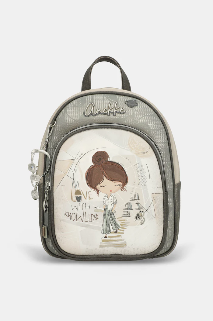 Η μπροστινή πλευρά του σακιδίου τραβά το βλέμμα με τη γνωστή φιγούρα της συλλογής Sophia, ενώ οι απαλές αποχρώσεις του εκρού, του γκρι και των γήινων τόνων δημιουργούν ένα κομψό και εύκολα συνδυάσιμο αποτέλεσμα. Επιπλέον, οι μεταλλικές λεπτομέρειες, το decorative charm και τα καμπύλα φερμουάρ ενισχύουν τον premium χαρακτήρα του προϊόντος. Από την άλλη πλευρά, η πίσω όψη με τις γεωμετρικές χρωματικές επιφάνειες και την πρόσθετη πίσω τσέπη ολοκληρώνει ένα σακίδιο που δείχνει προσεγμένο από κάθε πλευρά.