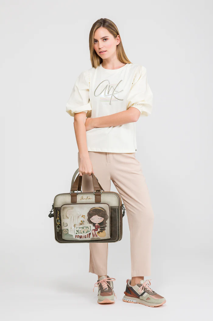 Το ιδιαίτερο design του χαρτοφύλακα αποτυπώνει αυτή τη φιλοσοφία μέσα από καλλιτεχνικά prints και διακοσμητικά στοιχεία που θυμίζουν αρχαιοελληνικούς κίονες και σύμβολα της τέχνης. Η χαρακτηριστική φιγούρα της Anekke στο μπροστινό μέρος μεταφέρει την αισθητική της συλλογής Muse, δημιουργώντας ένα μοναδικό αποτέλεσμα.