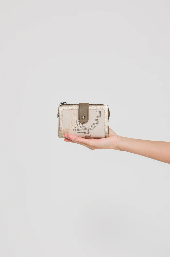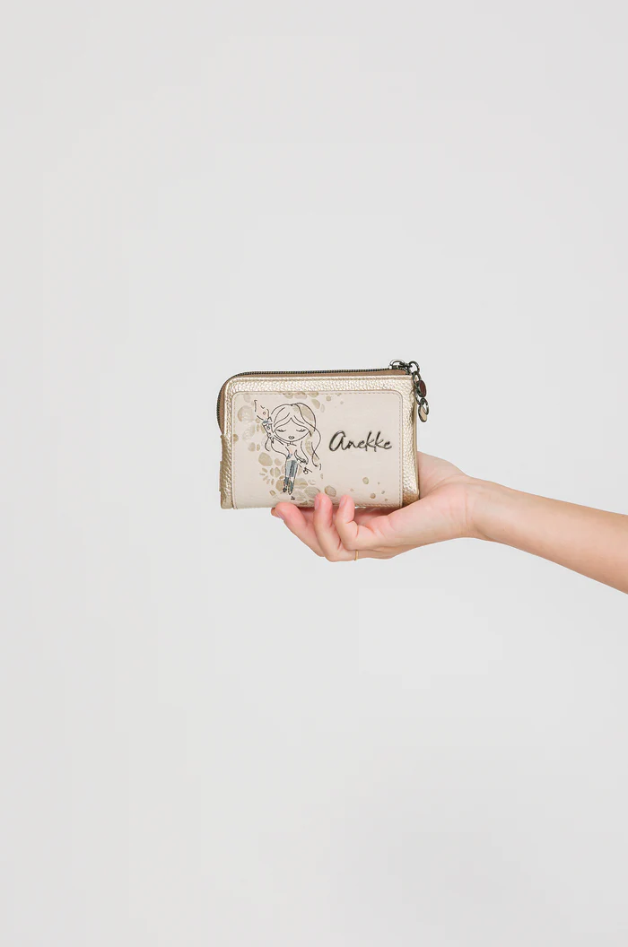 Το συγκεκριμένο πορτοφόλι ξεχωρίζει για τον ιδιαίτερο καλλιτεχνικό σχεδιασμό του, όπου απαλές αποχρώσεις, λεπτομέρειες embroidery και διακοσμητικά στοιχεία δημιουργούν ένα μοναδικό αισθητικό αποτέλεσμα. Η χαρακτηριστική φιγούρα της Anekke και τα διακριτικά μεταλλικά στοιχεία προσθέτουν προσωπικότητα και στυλ σε κάθε εμφάνιση.