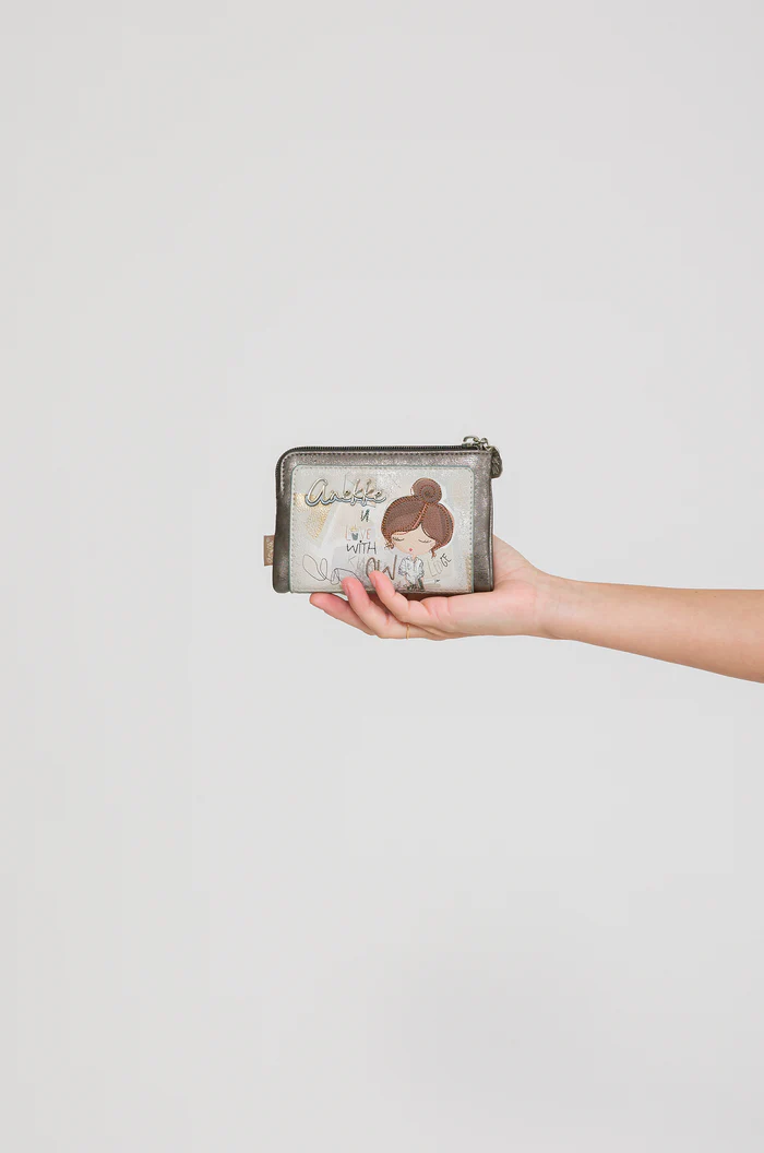 Το μπροστινό μέρος του πορτοφολιού ξεχωρίζει με το χαρακτηριστικό illustration της Anekke, το οποίο αποτελεί βασικό στοιχείο της ταυτότητας της μάρκας. Οι προσεγμένες ραφές, οι διαφορετικές υφές και οι μεταλλικές λεπτομέρειες δημιουργούν ένα κομψό αποτέλεσμα που αναβαθμίζει κάθε καθημερινό αξεσουάρ.