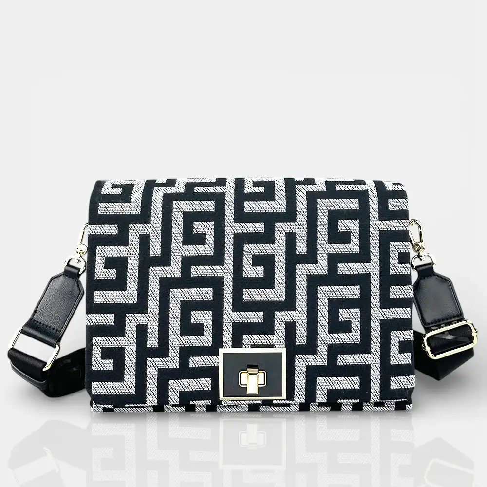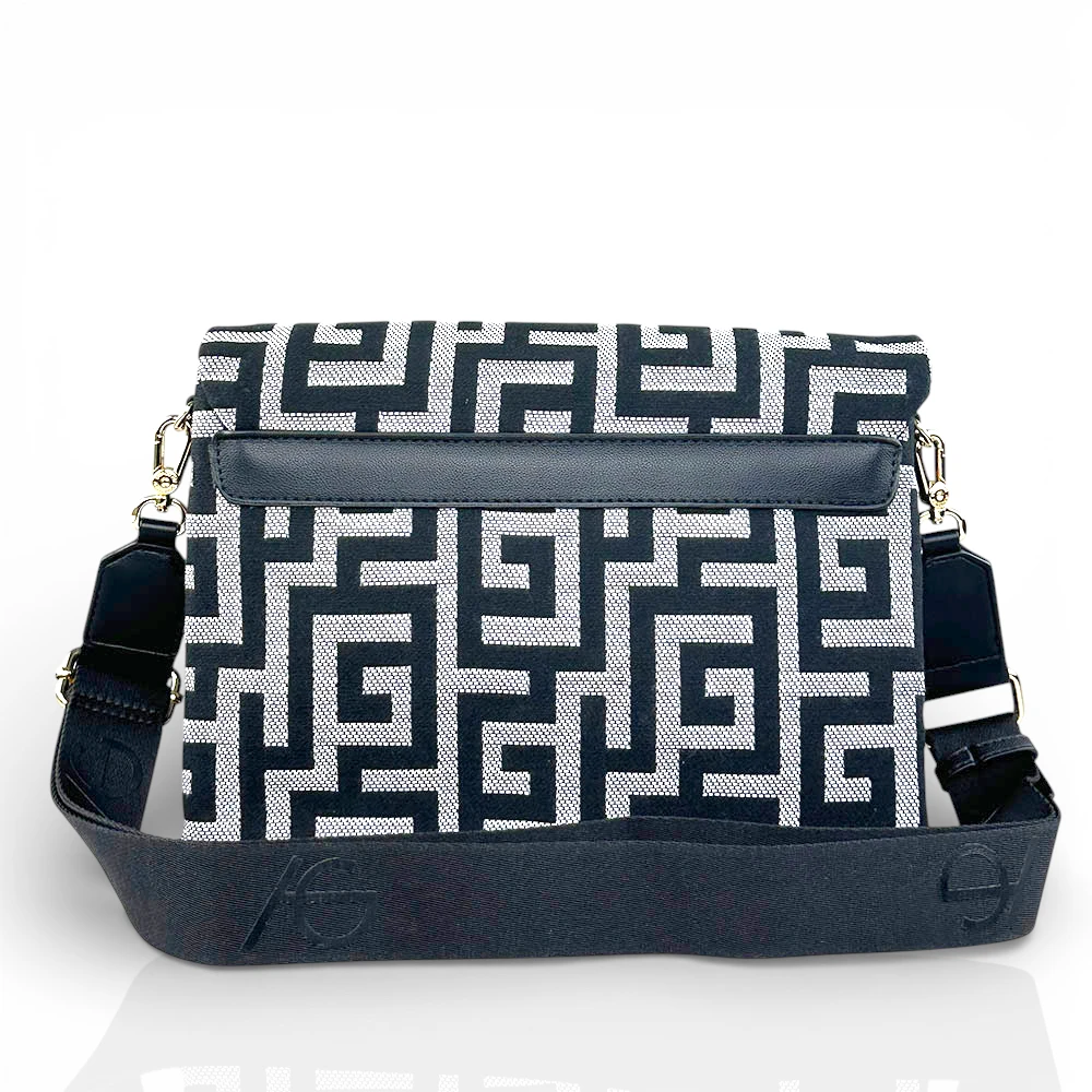 Αρχικά, η ποιότητα κατασκευής ξεχωρίζει. Η εταιρεία χρησιμοποιεί εξαιρετικής αντοχής ύφασμα καμβά, το οποίο αντέχει στη συχνή χρήση και διατηρεί τη φόρμα του. Επιπλέον, το διακριτικό μοτίβο με τον μαίανδρο στο καπάκι προσθέτει χαρακτήρα και σπάει τη μονοτονία του μαύρου, προσφέροντας μια σοφιστικέ πινελιά. Επομένως, κρατάτε ένα αξεσουάρ που τραβάει τα βλέμματα διακριτικά.