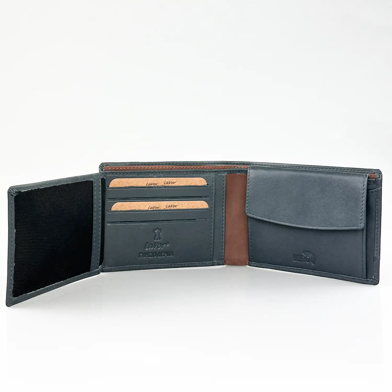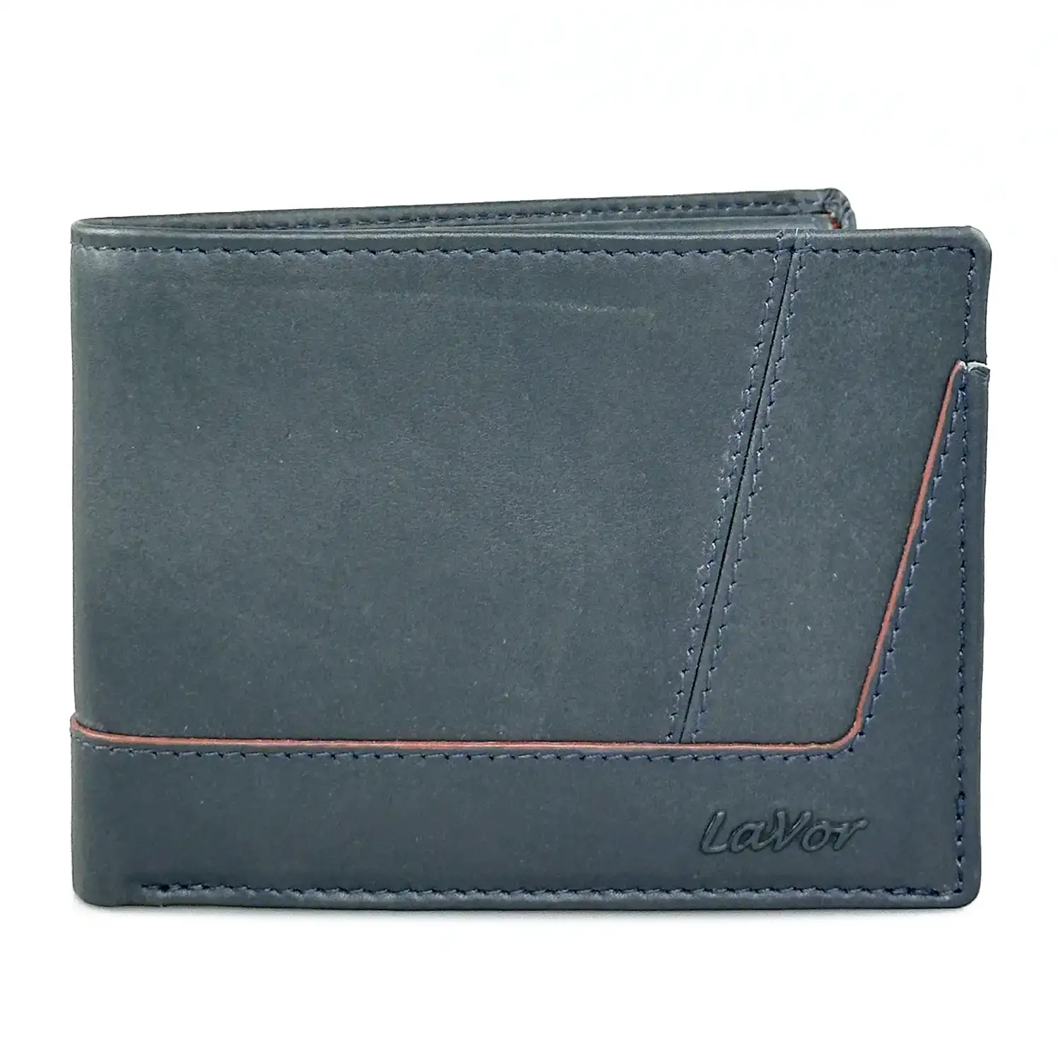 Δερμάτινο ανδρικό πορτοφόλι Lavor 1-6170 μπλε με RFID προστασία, μεσαίου μεγέθους, ιδανικό για οργανωμένη και ασφαλή καθημερινή χρήση.