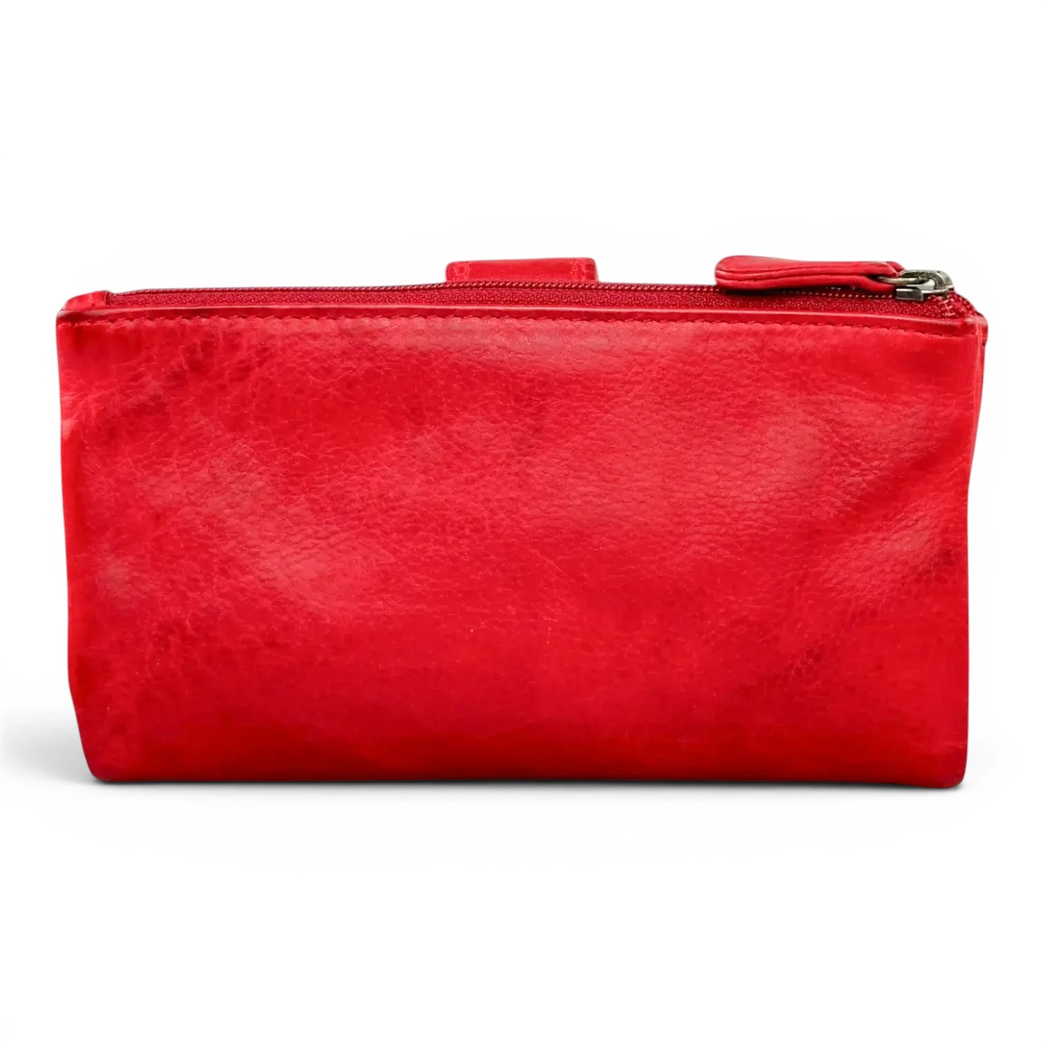 Το πορτοφόλι διαθέτει ένα clean εξωτερικό με το χαρακτηριστικό δερμάτινο tab κλείσιμο στη μπροστινή πλευρά — μια λεπτομέρεια που προσθέτει δομή και ταυτόχρονα εύκολη πρόσβαση στο εσωτερικό. Η vintage washed υφή του δέρματος δίνει φυσικές χρωματικές αποχρώσεις που κάνουν κάθε κομμάτι μοναδικό.