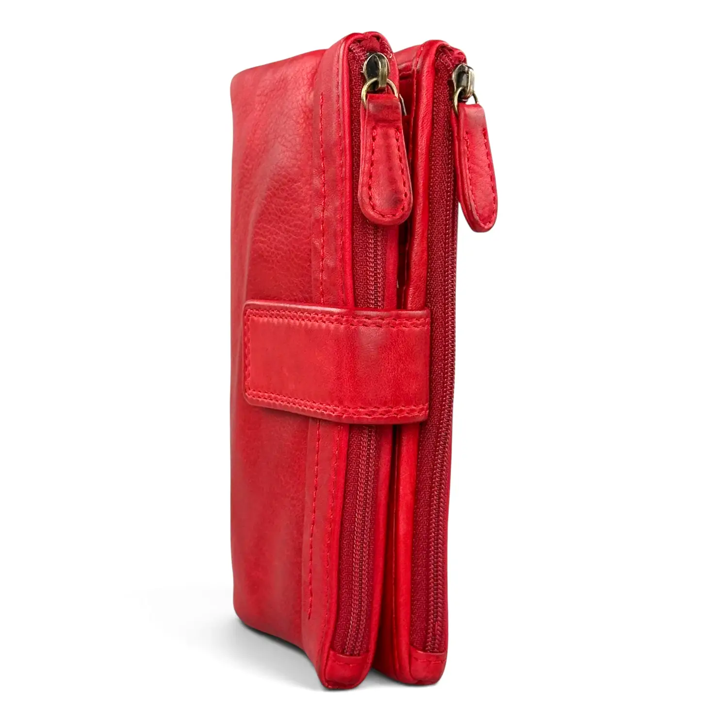 Και στις δύο πλευρές υπάρχουν ευρύχωρα φερμουάρ — το ένα προσβάσιμο από τη μπροστινή πλευρά και το άλλο από την πίσω — κάτι που σπάνια συναντά κανείς σε πορτοφόλι αυτού του μεγέθους. Αυτό προσφέρει επιπλέον χώρο για κέρματα, κλειδιά ή άλλα μικρά αντικείμενα, χωρίς να διογκώνει το πορτοφόλι.