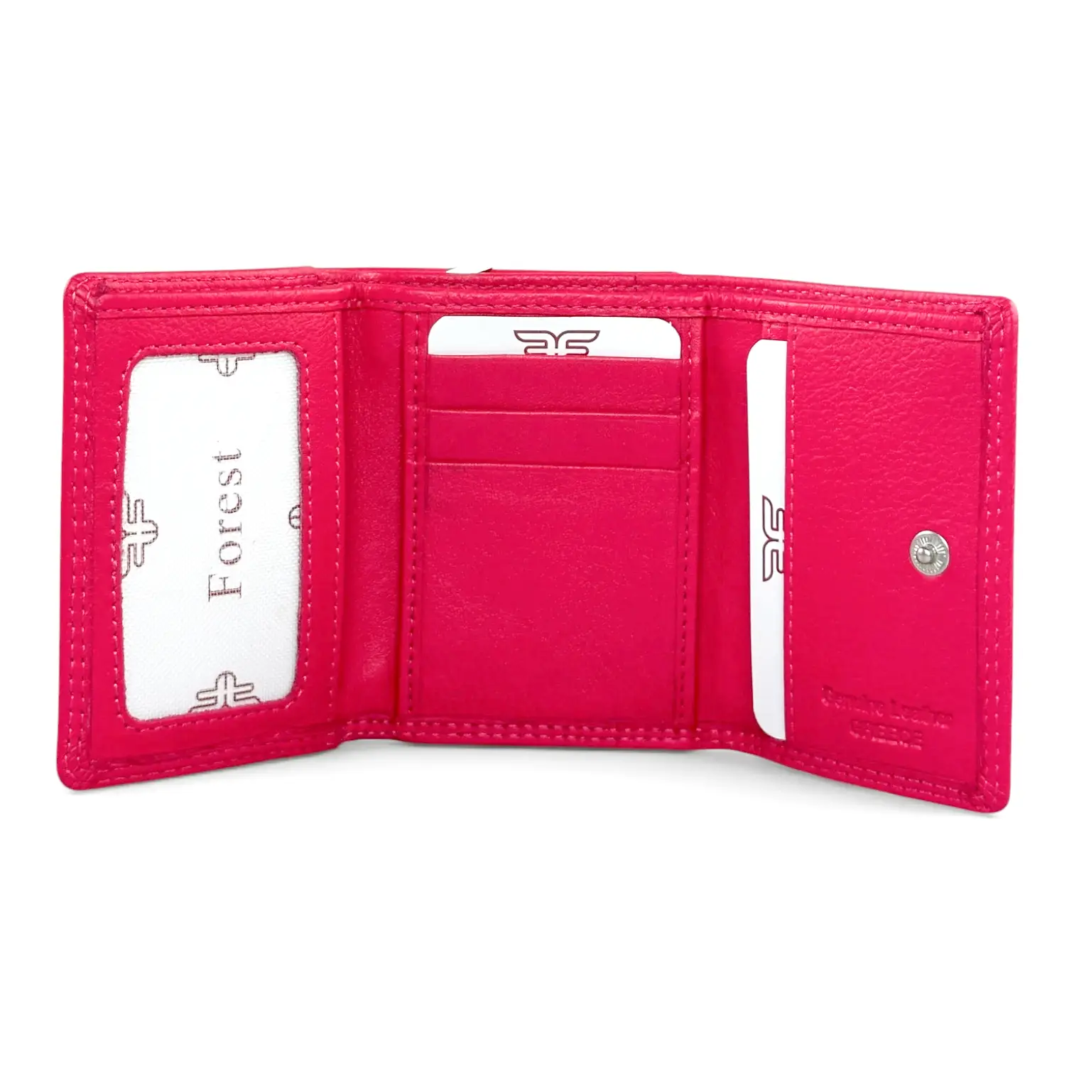 Μερικές φορές το μέγεθος δεν σχετίζεται με τη χωρητικότητα. Το δερμάτινο γυναικείο πορτοφόλι Calfnero FR50 σε φούξια χρώμα αποδεικνύει ακριβώς αυτό: ένα trifold compact πορτοφόλι διαστάσεων 10,5×3,5×8cm που χωράει έξι κάρτες, ταυτότητα, χαρτονομίσματα και κέρματα — χωρίς να ογκώνει καμία τσάντα.