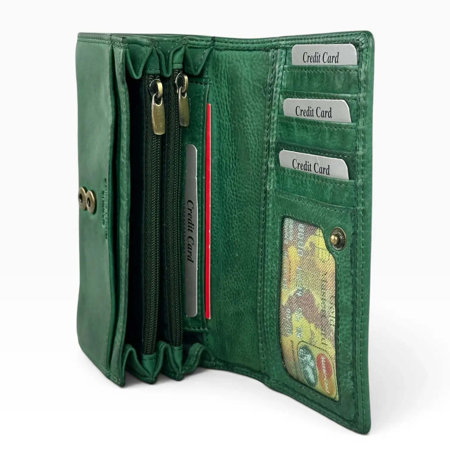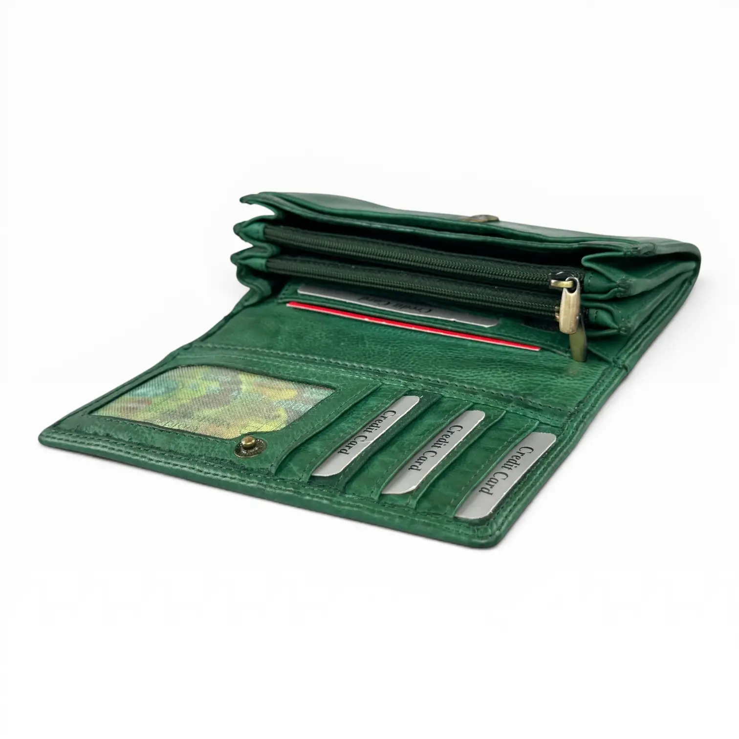 Δερμάτινο Γυναικείο Πορτοφόλι Μεσαίου Μεγέθους Calfnero MK57 — Φυσικό Δέρμα, Πλήρης Οργάνωση σε Compact Μέγεθος