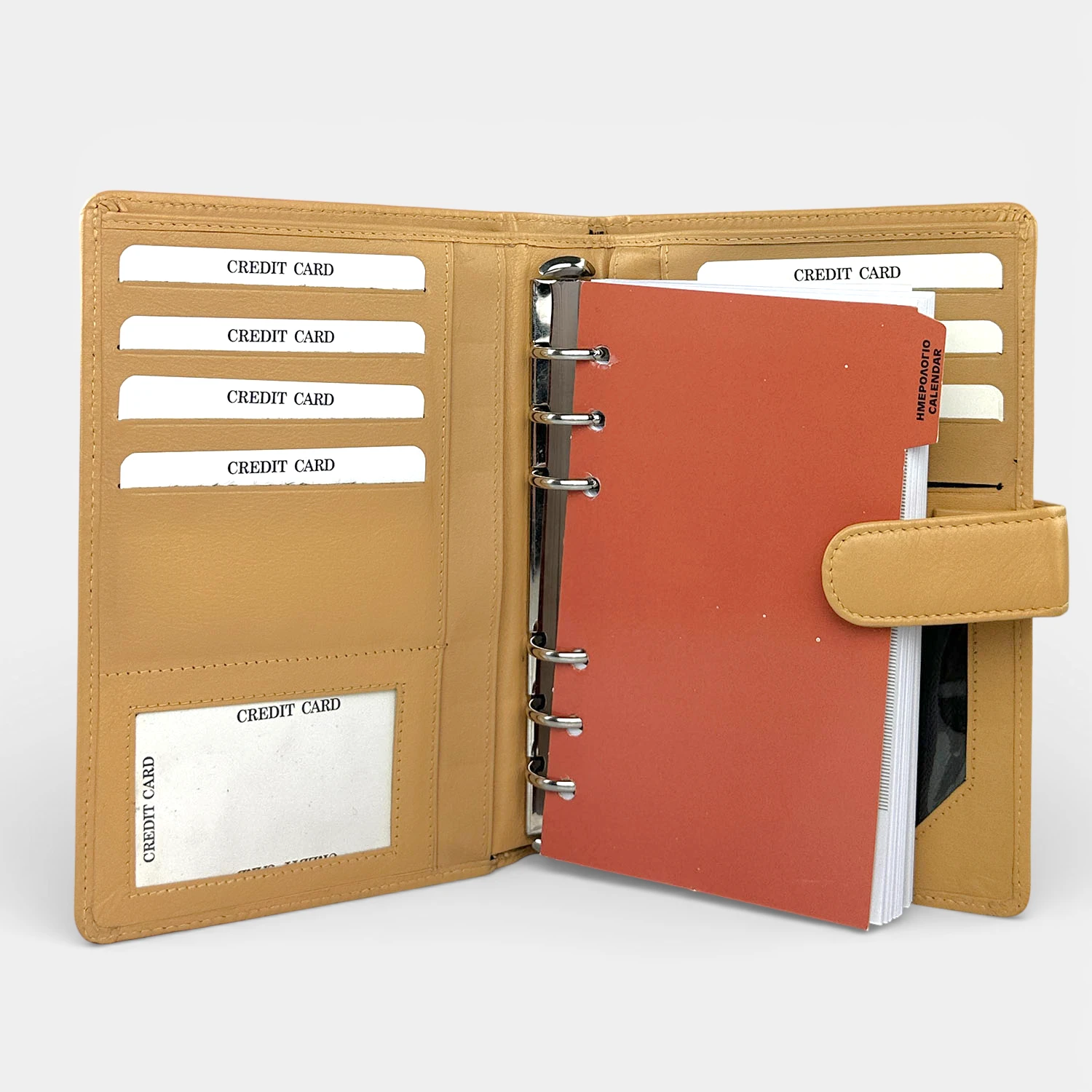 Δερμάτινο γυναικείο organizer MB53649 σε μπεζ χρώμα από soft δέρμα εξαιρετικής ποιότητας. Περιλαμβάνει θήκες για κάρτες και δυνατότητα αλλαγής ετήσιου ημερολογίου. Διαστάσεις: Μήκος 13cm, Πλάτος 4cm, Ύψος 20cm.