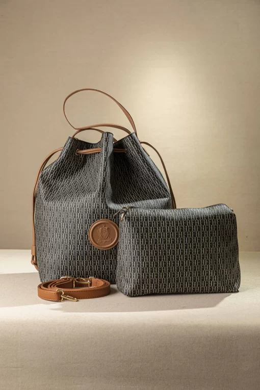 Αυτή η εντυπωσιακή τσάντα ώμου πουγκί, με εξαιρετικά μεγάλη χωρητικότητα θα γίνει η πιο αγαπημένη σας τσάντα! Περιλαμβάνει ευρύχωρο εσωτερικό τσαντάκι που ασφαλίζει με φερμουάρ και φυσικά μπορείτε να το χρησιμοποιήσετε και μεμονομένα σαν έξτρα τσαντάκι. Κλείνει τραβώντας το κορδώνι δερματίνης. Υλικό: Μαλακό συνθετικό δέρμα με ανάγλυφη υφή ή με logo print.