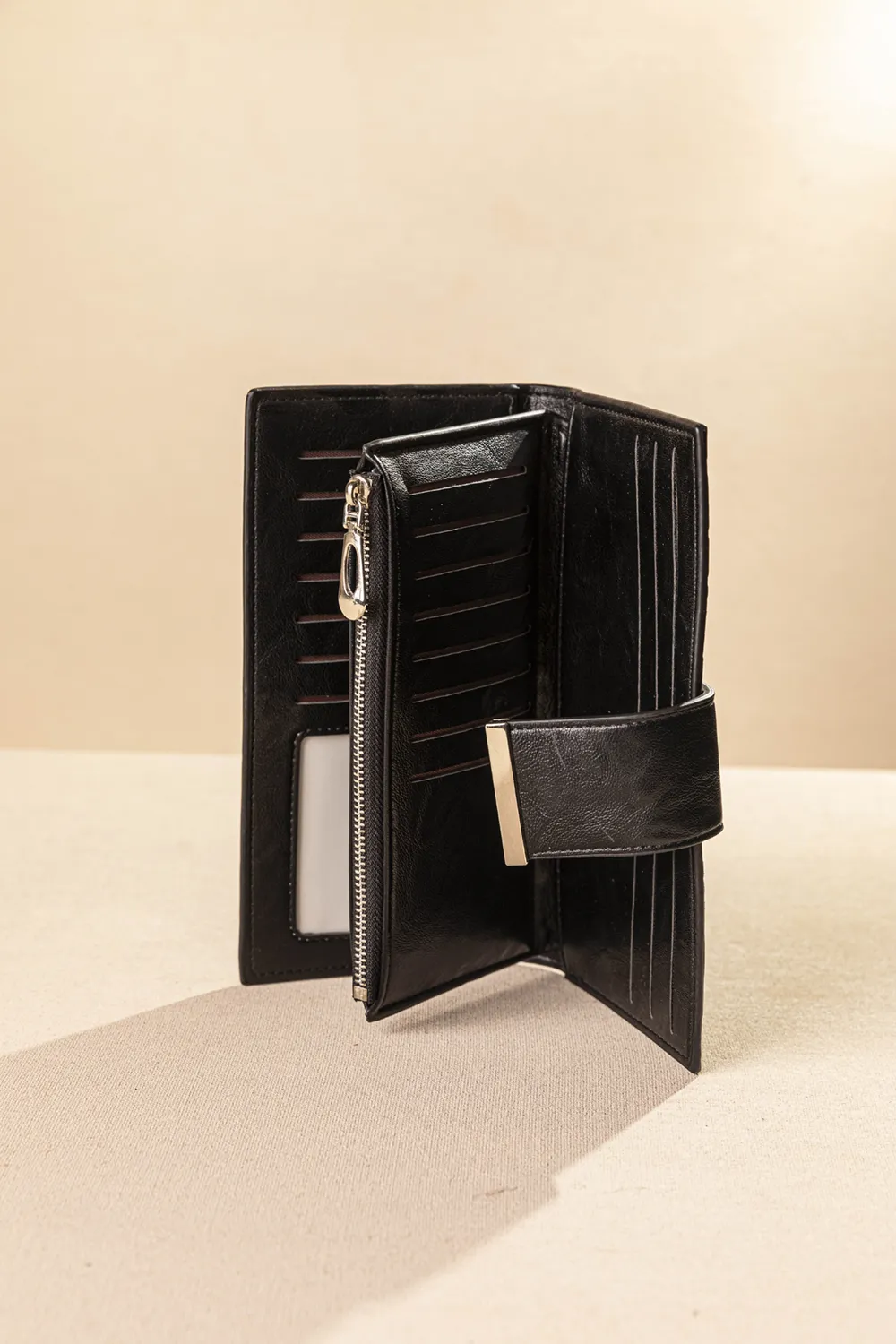 Πορτοφόλι φάκελος με εσωτερική τσέπη με φερμουάρ για τα κέρματα. Θέσεις χαρτονομισμάτων, καρτών και διαφόρων εγγράφων. Κλείνει με σούστα.