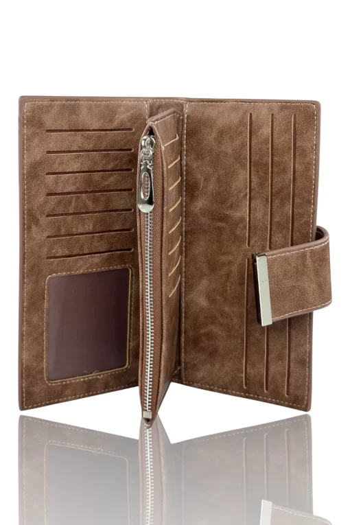Πορτοφόλι φάκελος με εσωτερική τσέπη με φερμουάρ για τα κέρματα. Θέσεις χαρτονομισμάτων, καρτών και διαφόρων εγγράφων. Κλείνει με σούστα.