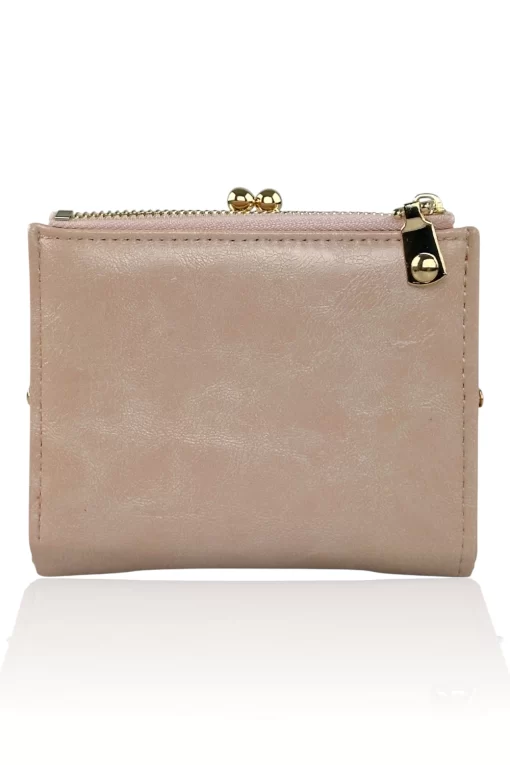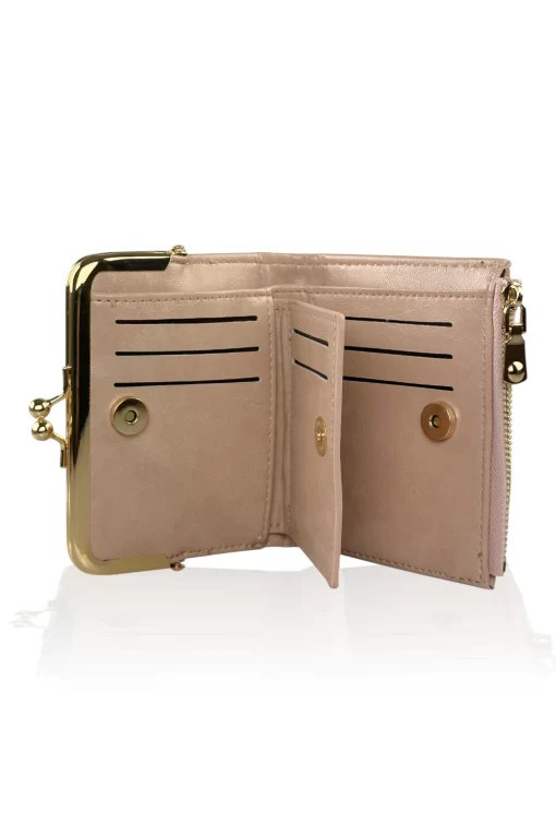 Μικρό elegant πορτοφόλι με πολλές θήκες για κάρτες. Διπλός χώρος για κάρτες εσωτερικά που κλείνει με μαγνητικό button και φυσικά θήκη για χαρτονομίσματα. Η κερματοθήκη του έχει μεταλλικό vintage κλείσιμο και διαθέτει έξτρα θήκη που κλείνει με μεταλλικό φερμουάρ.
