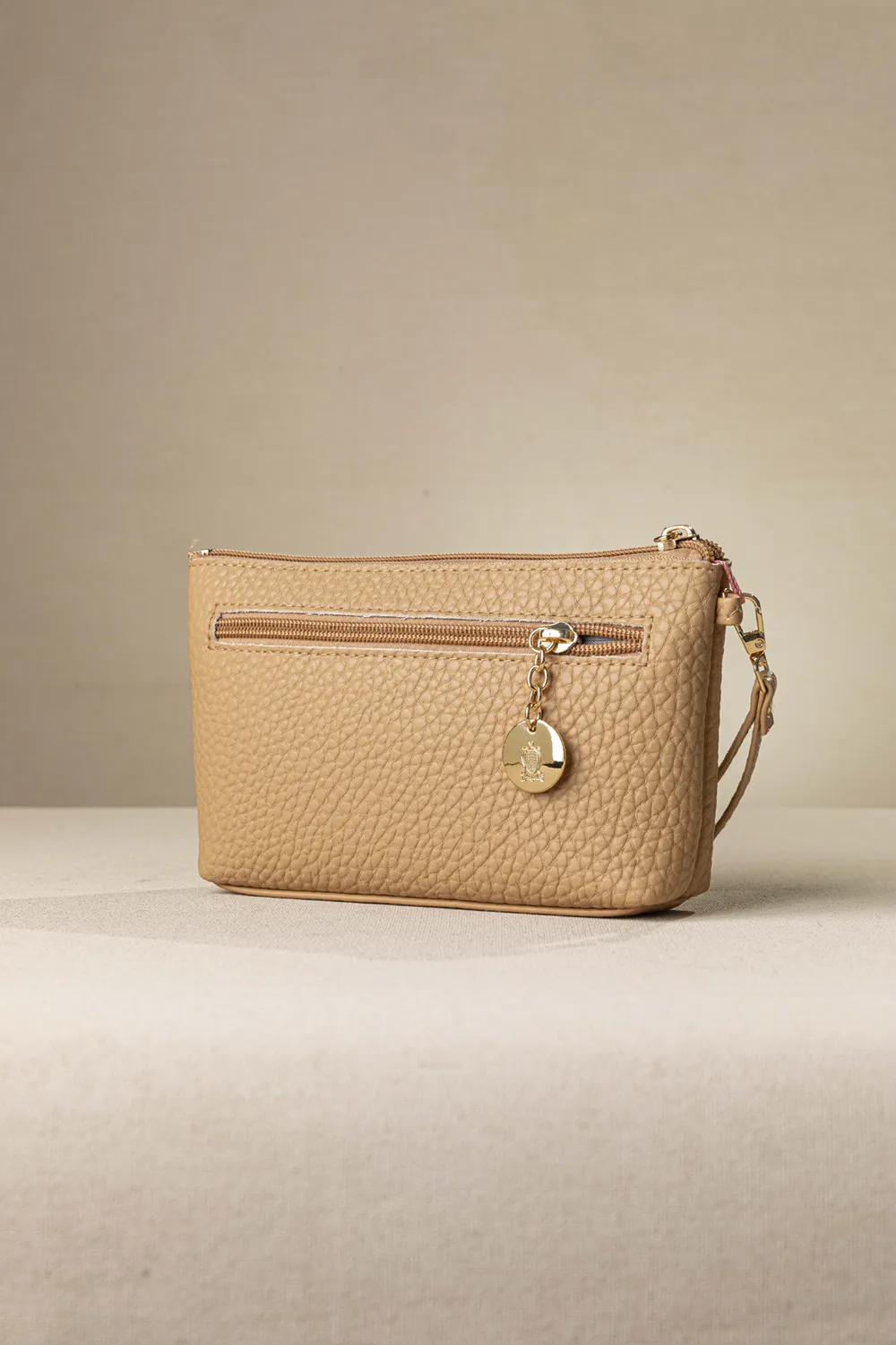 Νεσεσέρ χειρός τριθέσιο, με εσωτερικό δεύτερο φερμουάρ που διαχωρίζει τις 3 θέσεις. Πολύ πρακτικό για όλη την ημέρα σας τσαντάκι χειρός ή μέσα στην τσάντα για τα απαραίτητα μικροαντικείμενα σας ή το μακιγιάζ σας. Διακοσμητικό μεταλλικό τελείωμα στο εξωτερικό φερμουάρ.