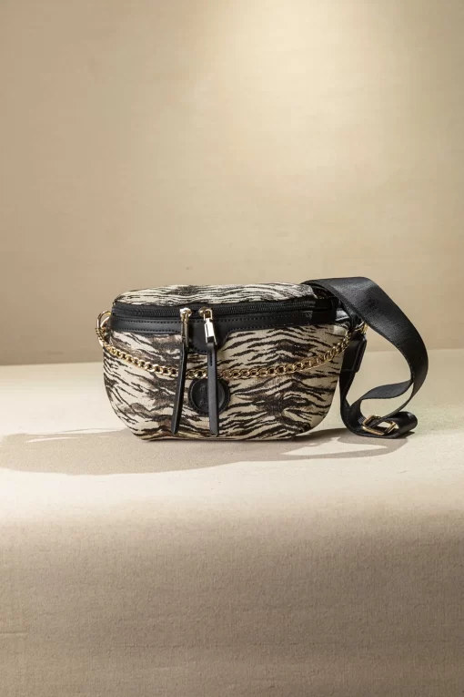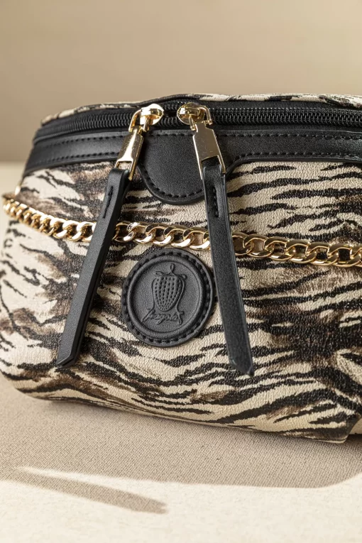 Crossbody μεσαίου μεγέθους. Στην κεντρική θέση διαθέτει τα κλασικά τσεπάκια στη φόδρα. Προσαρμογή στη μέση ή στον ώμο. Μονόχρωμος ιμάντας με δυνατότητα αυξομείωσης. Εντυπωσιακά pullers ίδια με το υλικό του φινιρίσματοας για εύκολο άνοιγμα! Η τροχισμένη αλυσίδα στο μπροστινό της μέρος δίνει μια πιο elegant πινελιά, όμως ταυτόχρονα είναι και αποσπόμενη.