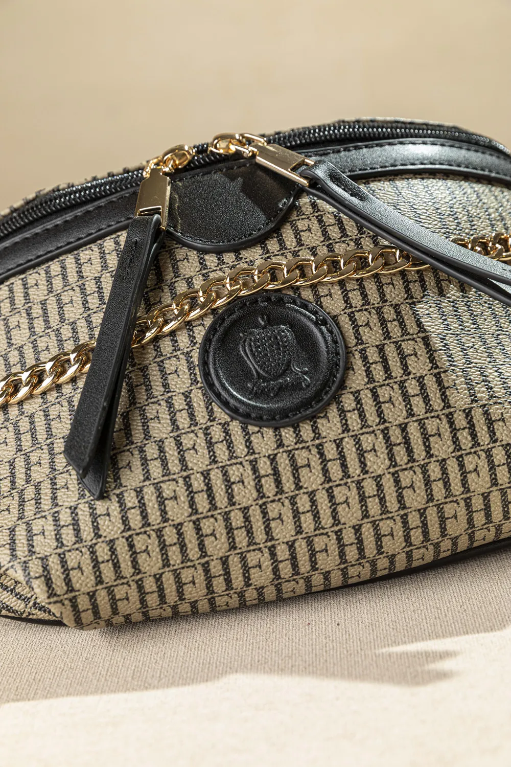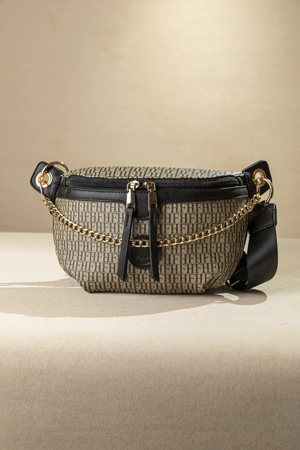 Crossbody μεσαίου μεγέθους. Στην κεντρική θέση διαθέτει τα κλασικά τσεπάκια στη φόδρα. Προσαρμογή στη μέση ή στον ώμο. Μονόχρωμος ιμάντας με δυνατότητα αυξομείωσης. Εντυπωσιακά pullers ίδια με το υλικό του φινιρίσματοας για εύκολο άνοιγμα! Η τροχισμένη αλυσίδα στο μπροστινό της μέρος δίνει μια πιο elegant πινελιά, όμως ταυτόχρονα είναι και αποσπόμενη.