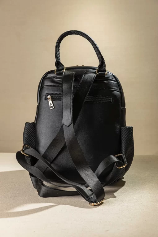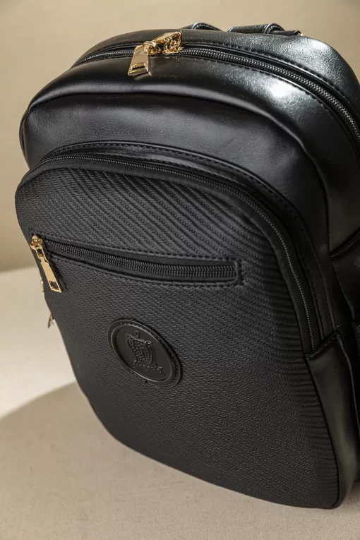 Δίχωρο σακίδιο με δυο απολύτως διαχωρισμένες θέσεις που κλείνουν με φερμουάρ. Το μπροστινό μέρος φέρει μια έξτρα τσέπη που κλείνει με φερμουάρ.Στον εσωτερικό χώρο βρίσκουμε τα βοηθητικά τσεπάκια και εξωτερική βοηθητική τσέπη με φερμουάρ στο πίσω μέρος του. Στο πλάι διαθέτει δύο τσέπες που κλείνουν με μαγνητικό μπουτόν. Τα χεράκια των ώμων είναι δερματίνη με ιμάντα για μεγαλύτερη άνεση. Υλικό: Συνθετικό δέρμα με μαλακή υφή και snake ή tiger print.