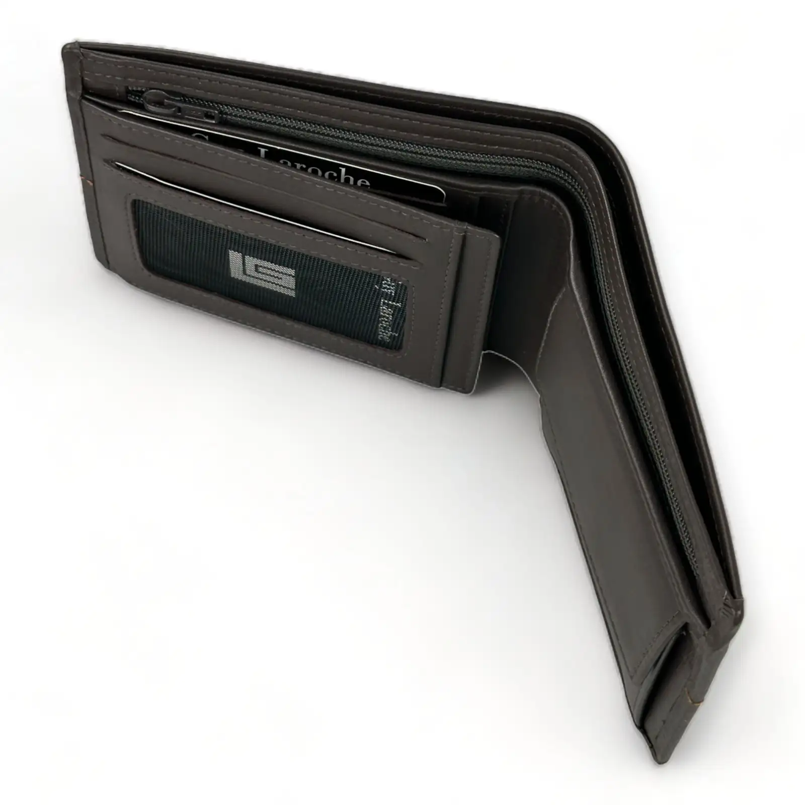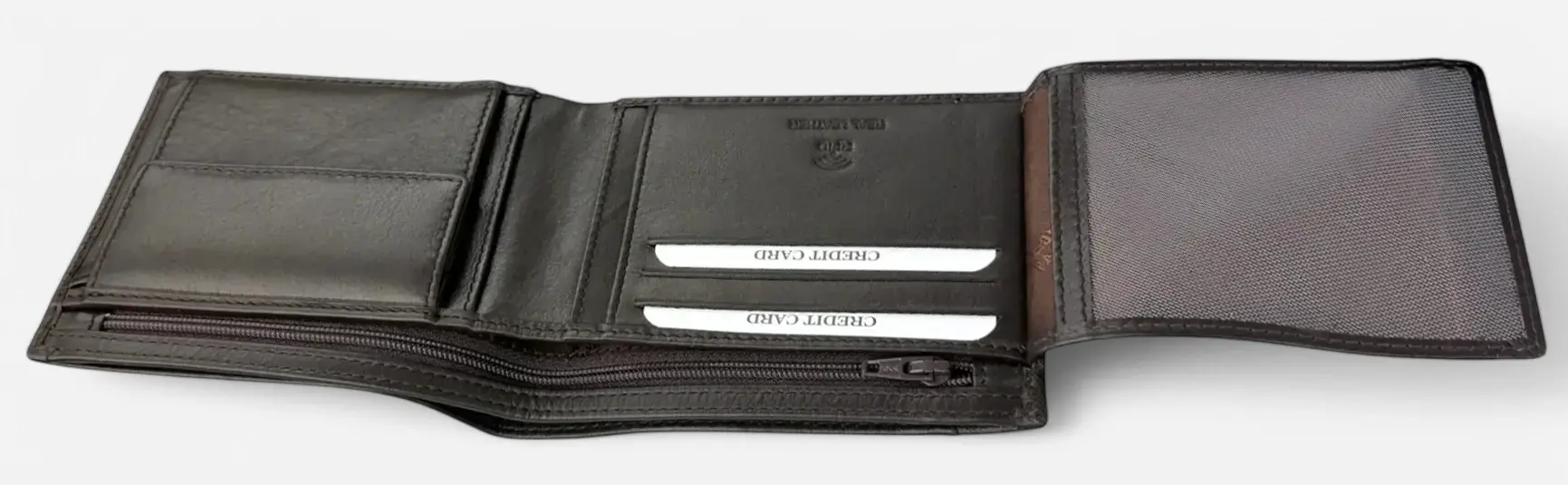 Ο σχεδιασμός του μοντέλου 48003 εστιάζει στη μέγιστη λειτουργικότητα χωρίς να προσθέτει περιττό όγκο. Διαθέτει δύο κύριες θέσεις για χαρτονομίσματα και μία επιπλέον θέση με φερμουάρ στο εσωτερικό του, η οποία προσφέρει επιπλέον ασφάλεια για πολύτιμα αντικείμενα ή μεγαλύτερες αξίες. Με 6 ειδικά διαμορφωμένες θέσεις για κάρτες και επιπλέον εσωτερικές θέσεις, εξασφαλίζει ότι όλα τα απαραίτητα παραμένουν ταξινομημένα. Η ειδική θέση για την αστυνομική ταυτότητα προσφέρει άμεση πρόσβαση, ενώ η εσωτερική τσέπη για κέρματα διατηρεί τα ψιλά σας οργανωμένα και ασφαλή.