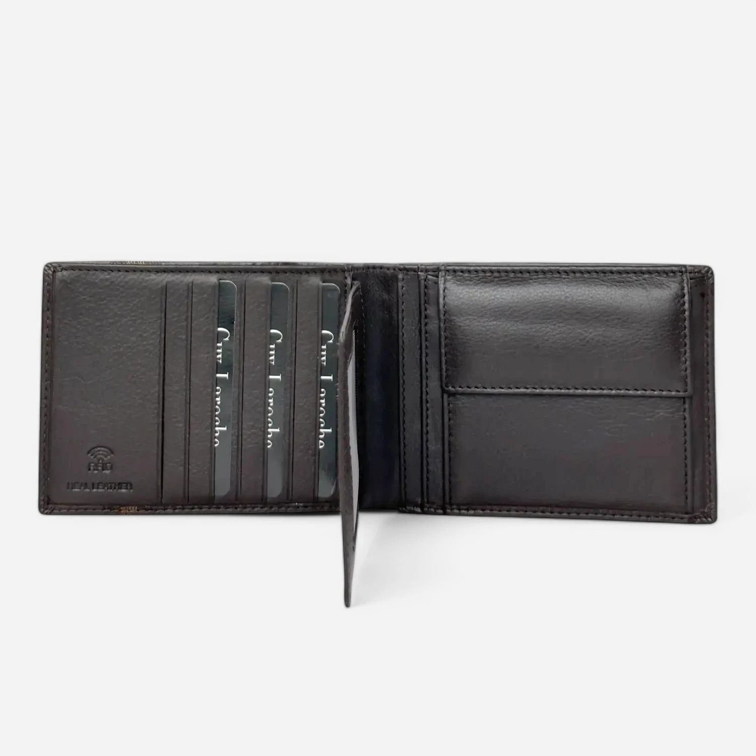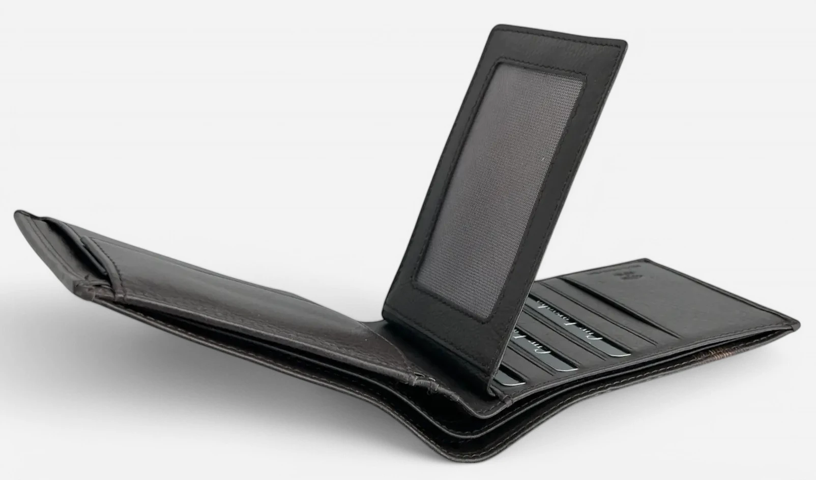 - Εξειδικευμένες Θήκες: 2 θέσεις με διαφάνεια για ταυτότητα και 3 εσωτερικές κρυφές θέσεις.