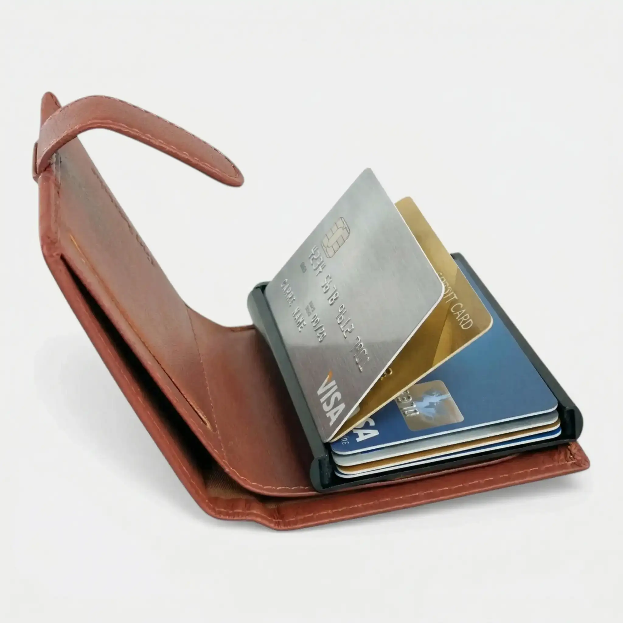 Η καρδιά του μοντέλου 48404 βρίσκεται στον εσωτερικό μεταλλικό μηχανισμό του. Με μια απλή κίνηση, οι κάρτες σας αναδύονται κλιμακωτά, επιτρέποντάς σας να εντοπίσετε και να χρησιμοποιήσετε αυτή που επιθυμείτε σε κλάσματα δευτερολέπτου. Ο μηχανισμός φιλοξενεί έως και 5 κάρτες με απόλυτη σταθερότητα, ενώ λειτουργεί ταυτόχρονα ως ασπίδα προστασίας. Η ενσωματωμένη τεχνολογία RFID Protection μπλοκάρει κάθε απόπειρα υποκλοπής δεδομένων ή ανεπιθύμητης ανέπαφης χρέωσης, διασφαλίζοντας ότι τα προσωπικά σας στοιχεία παραμένουν ασφαλή όσο κινείστε στην πόλη ή ταξιδεύετε.