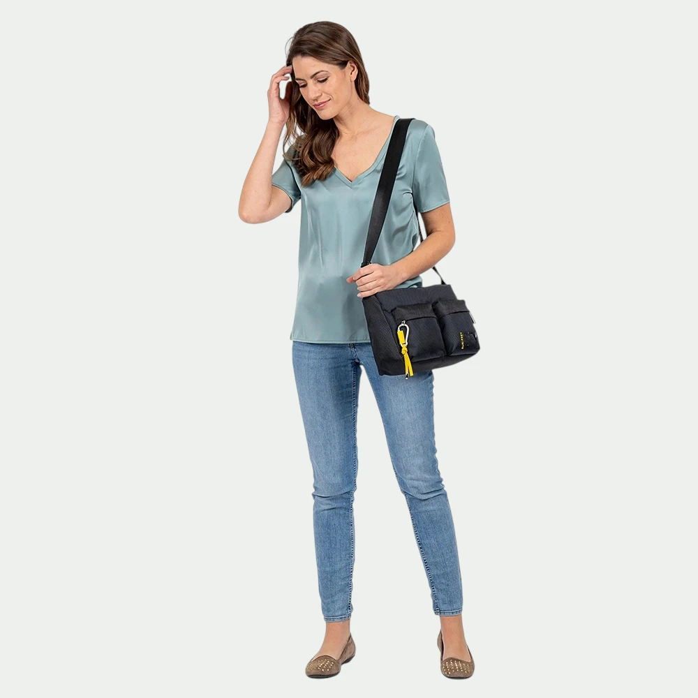 Η γυναικεία τσάντα ώμου – ταχυδρόμου Marry της Suri Frey είναι ένα αξεσουάρ που αποπνέει κομψότητα, άνεση και συνειδητή επιλογή. Δημιουργημένη από ανακυκλωμένη πολυουρεθάνη (PUR recycelt), η τσάντα αυτή συνδυάζει τη γερμανική ποιότητα με τον σεβασμό προς το περιβάλλον, αποτελώντας την ιδανική πρόταση για τη σύγχρονη γυναίκα που επιλέγει βιώσιμη μόδα χωρίς να θυσιάζει το στυλ της.