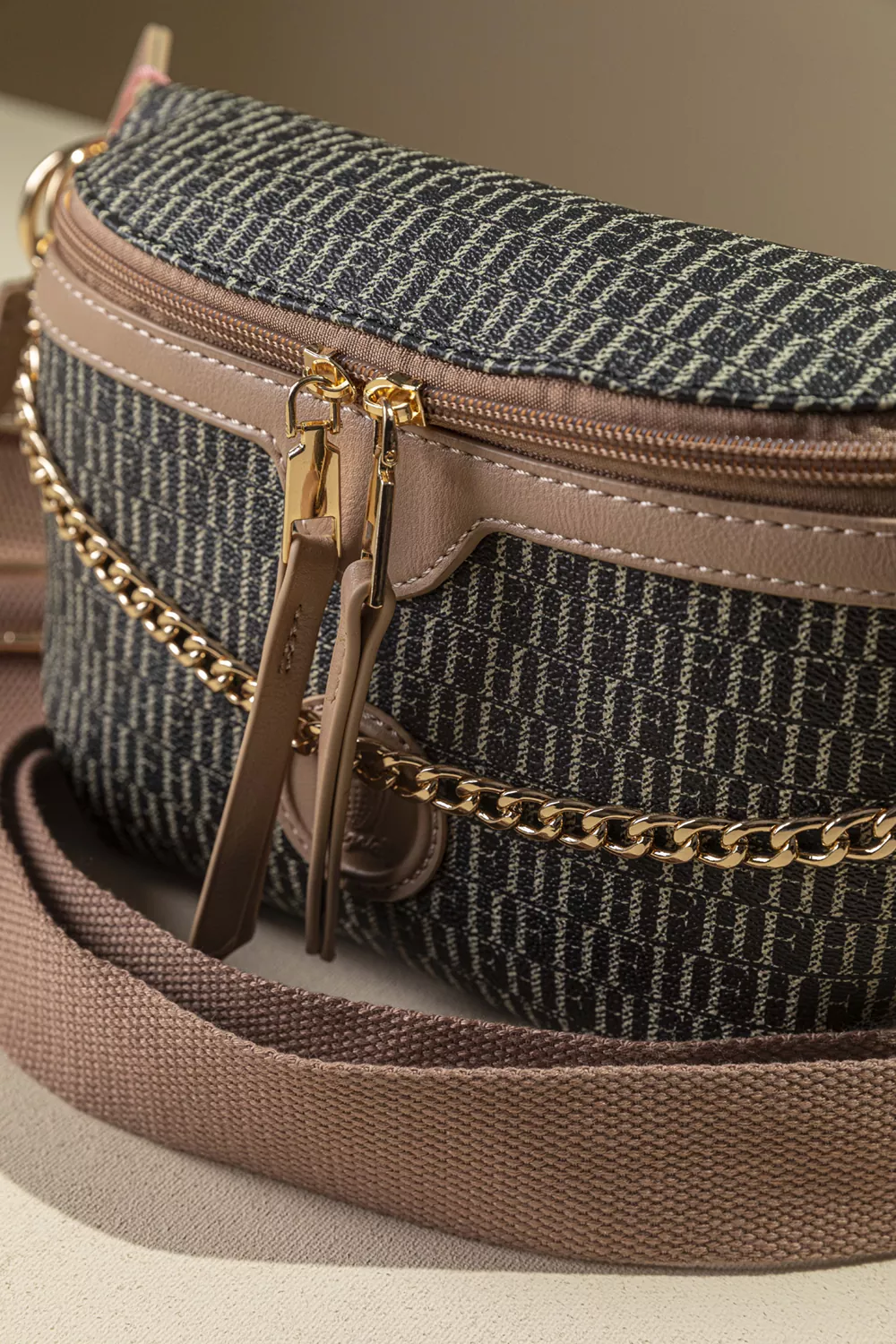 • Crossbody μεσαίου μεγέθους. Στην κεντρική θέση διαθέτει τα κλασικά τσεπάκια στη φόδρα. Προσαρμογή στη μέση ή στον ώμο. • Μονόχρωμος ιμάντας με δυνατότητα αυξομείωσης. Εντυπωσιακά pullers ίδια με το υλικό του φινιρίσματος για εύκολο άνοιγμα! • Η τροχισμένη αλυσίδα στο μπροστινό της μέρος δίνει μια πιο elegant πινελιά, όμως ταυτόχρονα είναι και αποσπώμενη. Υλικό: Συνθετική δερματίνη με το logo της