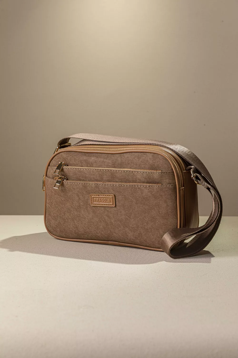• Πολυθέσια, λειτουργική και κομψή χιαστί τσάντα, απόλυτα εργονομική, με εκλεπτυσμένο χαρακτήρα! • Δύο κεντρικές θέσεις απόλυτα διαχωρισμένες μεταξύ τους, που κλείνουν με διαφορετικό φερμουάρ. • Δύο ξεχωριστές τσέπες στο μπροστά μέρος με φερμουάρ. Τσέπη με φερμουάρ στο πίσω μέρος. Ιμάντας με αυξομείωση. Υλικό: Συνθετικό δέρμα με τη μορφή canva σε εντυπωσιακά χρώματα