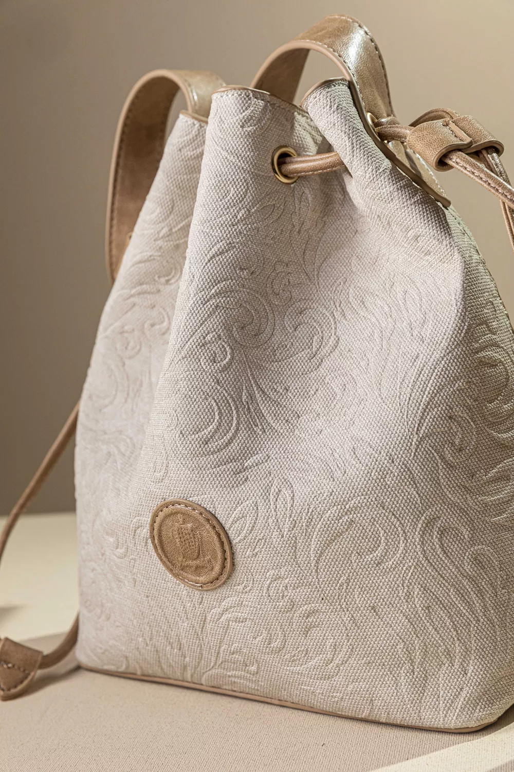 Υλικό: Συνθετικό δέρμα με υφή canva και εντυπωσιακό ανάγλυφο print ή Συνθετικό δέρμα με τη μορφή ψάθας σε γήινα χρώματα.