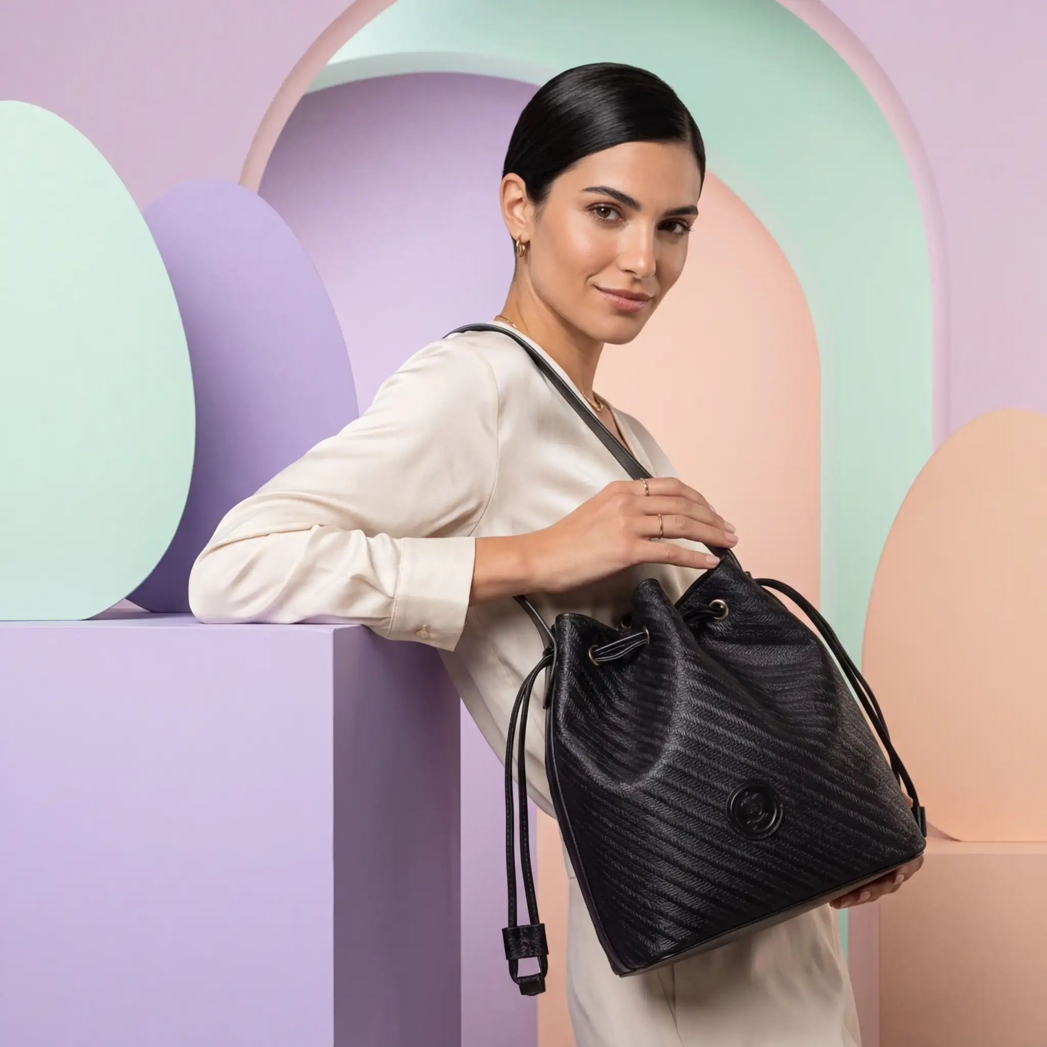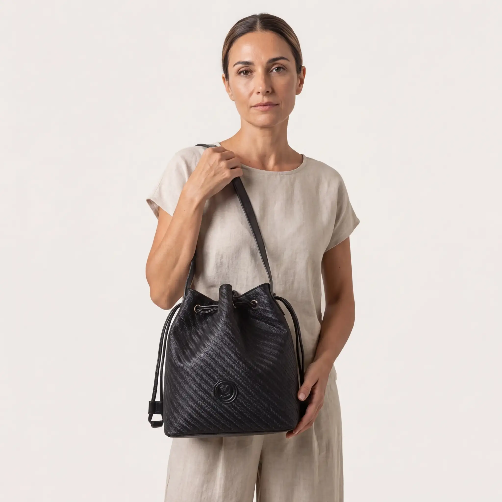 • Κομψή γυναικεία τσάντα-πουγκί με διαχρονικό και εκλεπτυσμένο χαρακτήρα. Αποτελεί ιδανική επιλογή για καθημερινές αλλά και πιο προσεγμένες εμφανίσεις.