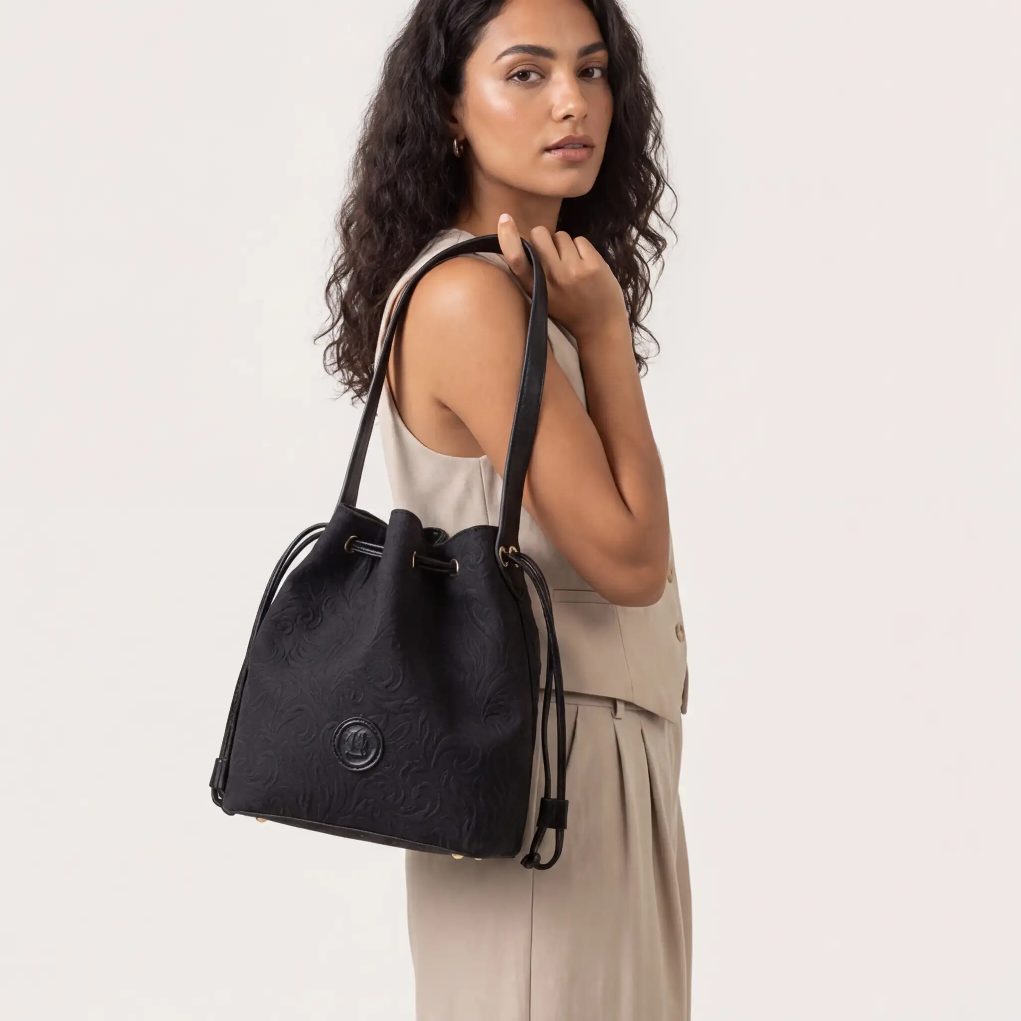 • Κομψή γυναικεία τσάντα-πουγκί με διαχρονικό και εκλεπτυσμένο χαρακτήρα. Αποτελεί ιδανική επιλογή για καθημερινές αλλά και πιο προσεγμένες εμφανίσεις.