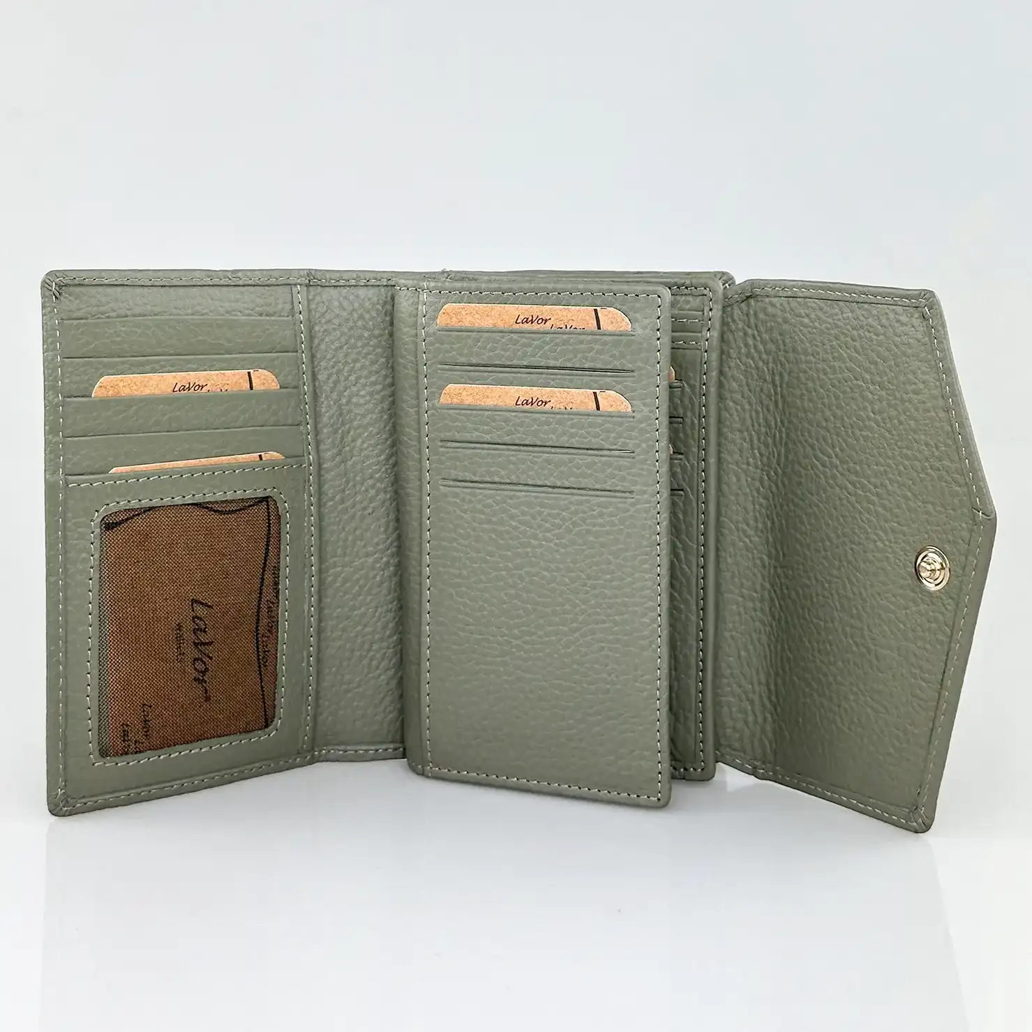 Το δερμάτινο γυναικείο πορτοφόλι μεσαίου μεγέθους Lavor 1-6000 σε χακί χρώμα αποτελεί μια εξαιρετικά λειτουργική και κομψή επιλογή για γυναίκες που δίνουν έμφαση στην οργάνωση, την ποιότητα και τη διαχρονική αισθητική. Χάρη στον προσεγμένο σχεδιασμό του, συνδυάζει πρακτικότητα και κομψότητα, ενώ παράλληλα καλύπτει πλήρως τις ανάγκες της καθημερινότητας.