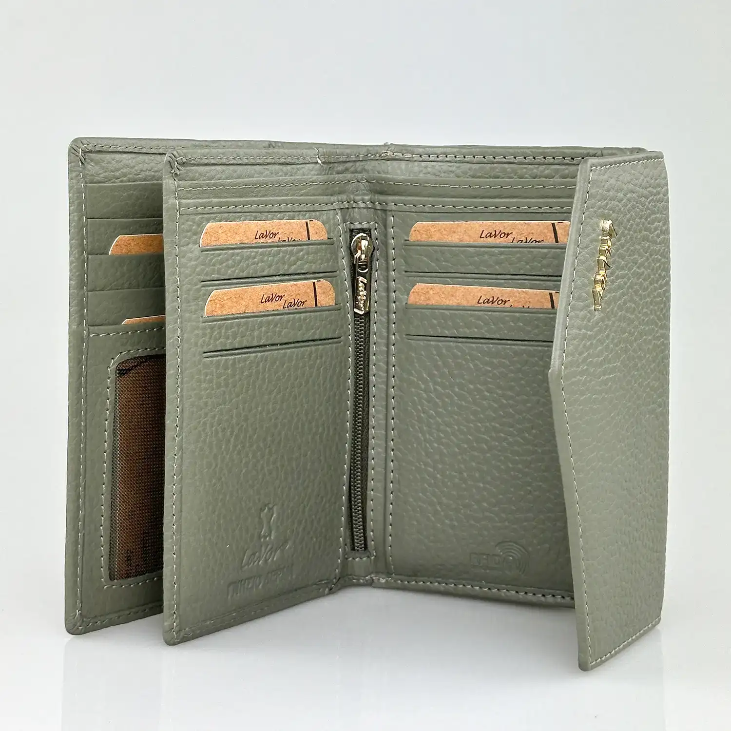 Το δερμάτινο γυναικείο πορτοφόλι Lavor 1-6000 σε χακί χρώμα αποτελεί μια εξαιρετική επιλογή για καθημερινή χρήση, καθώς προσφέρει άψογη οργάνωση, διακριτική κομψότητα και αυξημένη ασφάλεια σε κάθε σας μετακίνηση.