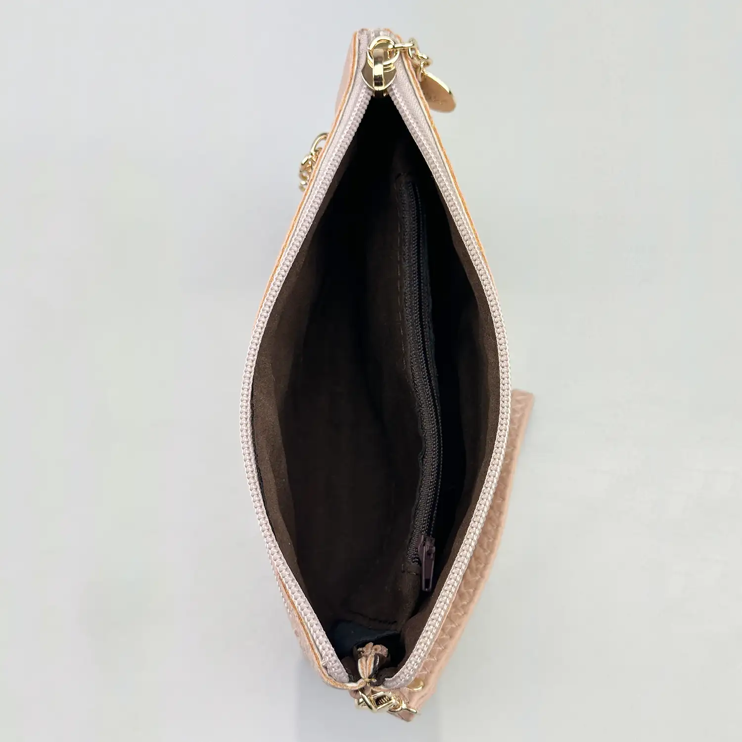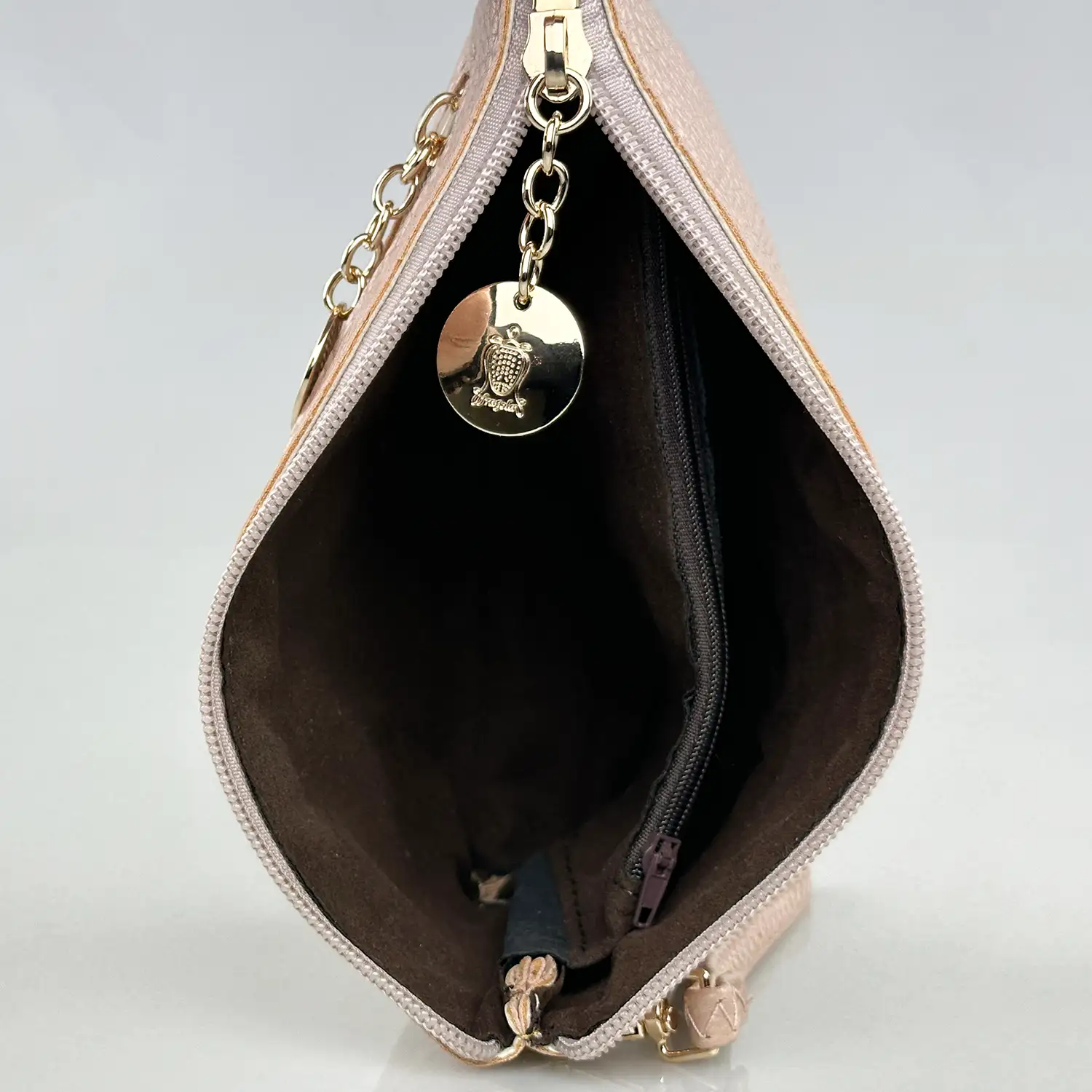 Πολύ πρακτικό για όλη την ημέρα σας τσαντάκι χειρός ή μέσα στην τσάντα για τα απαραίτητα μικροαντικείμενα σας ή το μακιγιάζ σας. Διακοσμητικό μεταλλικό τελείωμα στο εξωτερικό φερμουάρ.