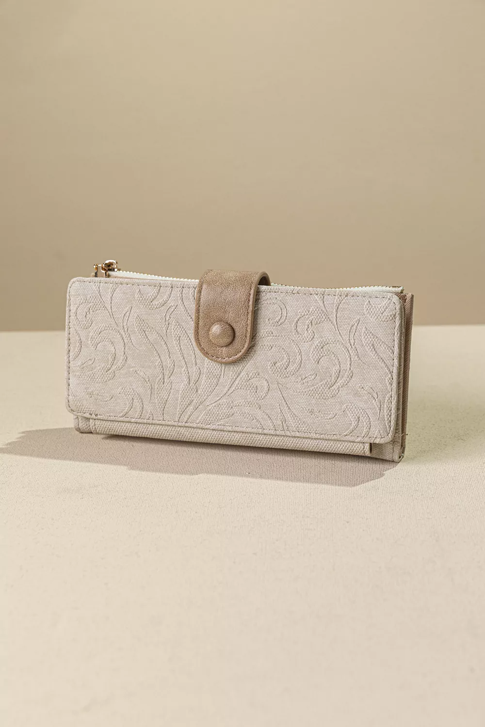 • Κομψό και πρακτικό γυναικείο πορτοφόλι, με διακριτικό ανάγλυφο σχέδιο στο εξωτερικό.